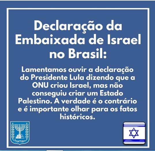 Declaração da Embaixada de Israel no Brasil: