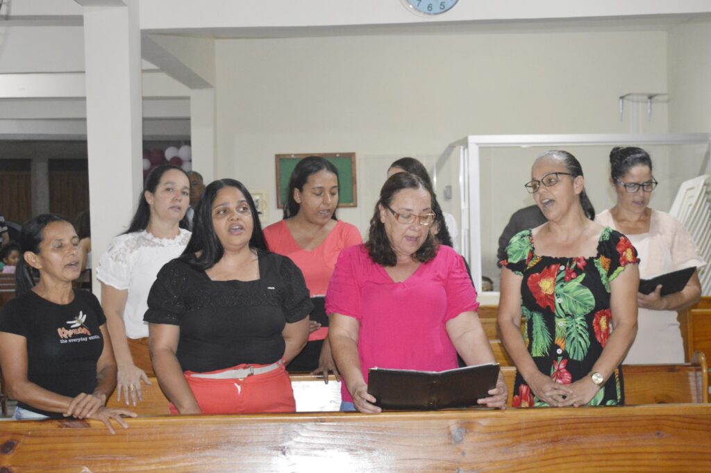O culto de celebração teve início com louvores entoados da harpa cristã, conduzidos pelo pastor Raimundo Ferreira. A irmã Joanita, dirigente do Círculo de Oração, também teve participação ativa na condução deste momento especial.