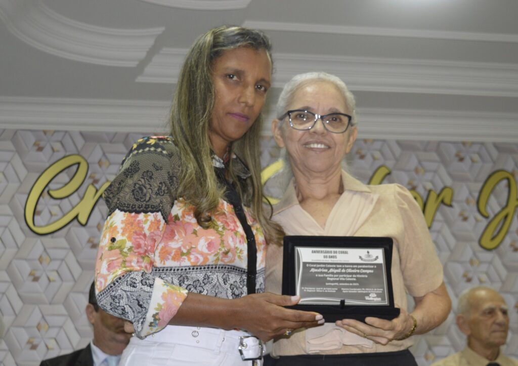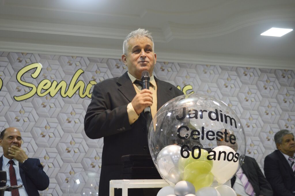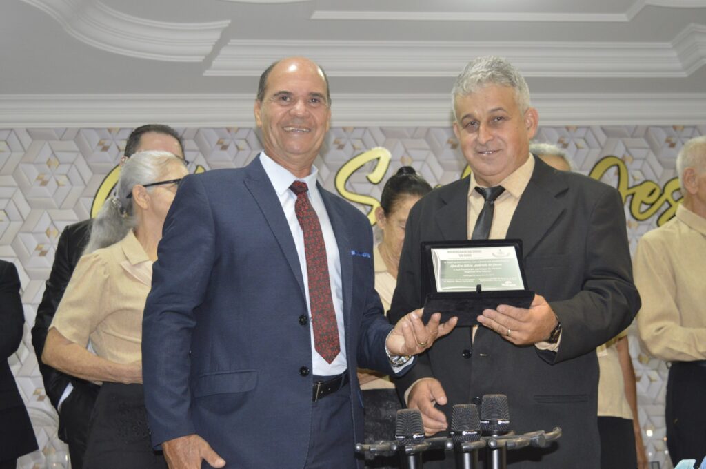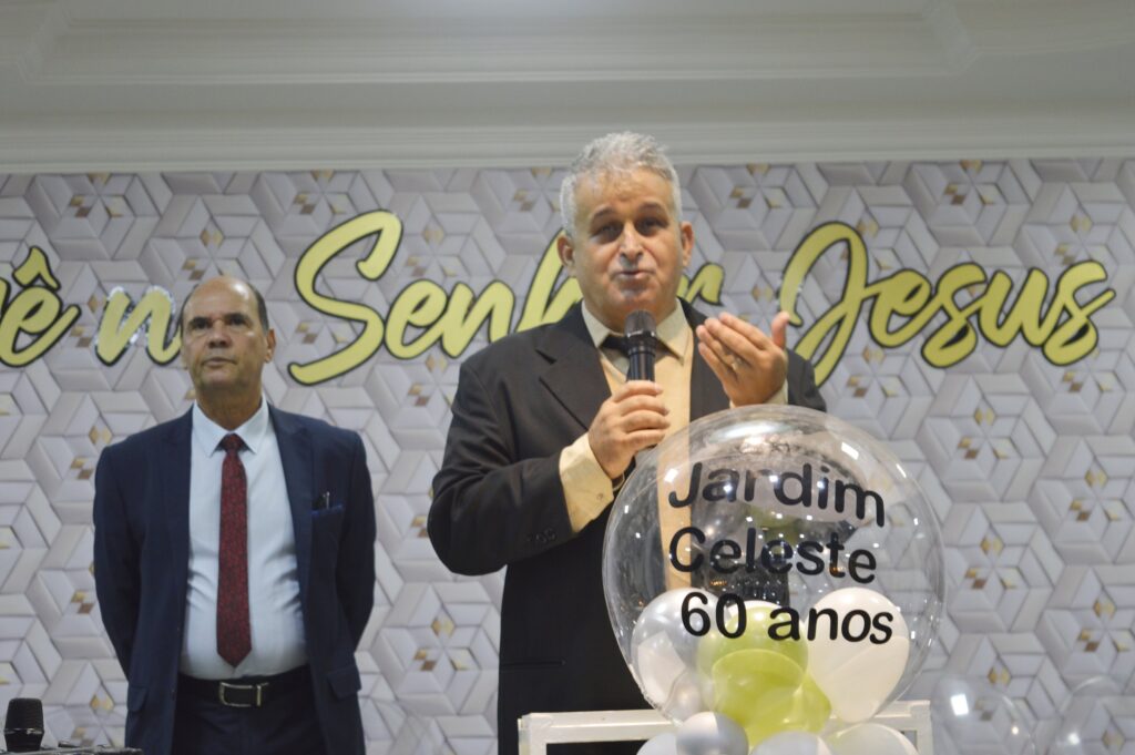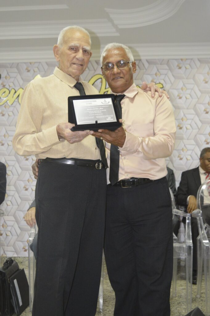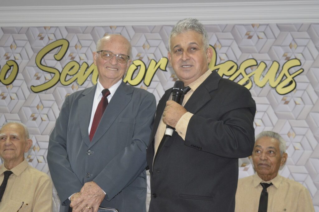 Durante a celebração, o presbítero Hélcio Andrade foi homenageado pelo brilhante trabalho que está desempenhando à frente do Coral Jardim Celeste. O pastor regional Nilton Silva fez a entrega da placa em reconhecimento a essa valiosa contribuição.