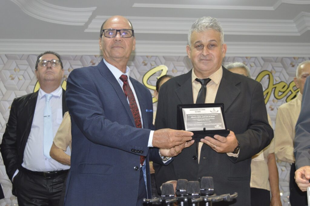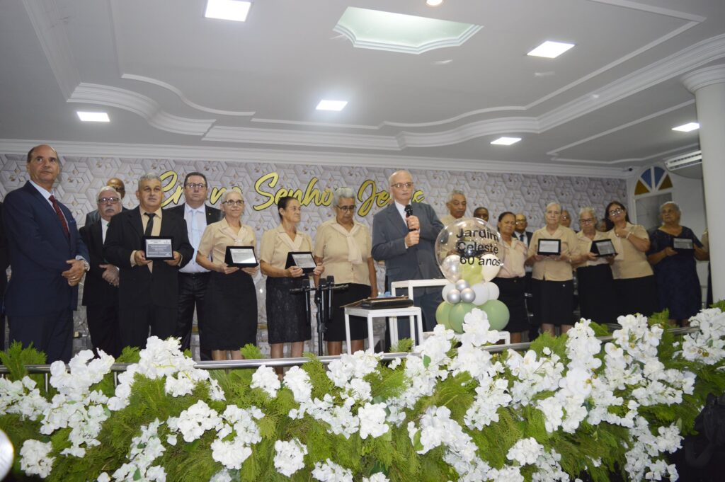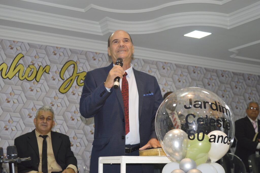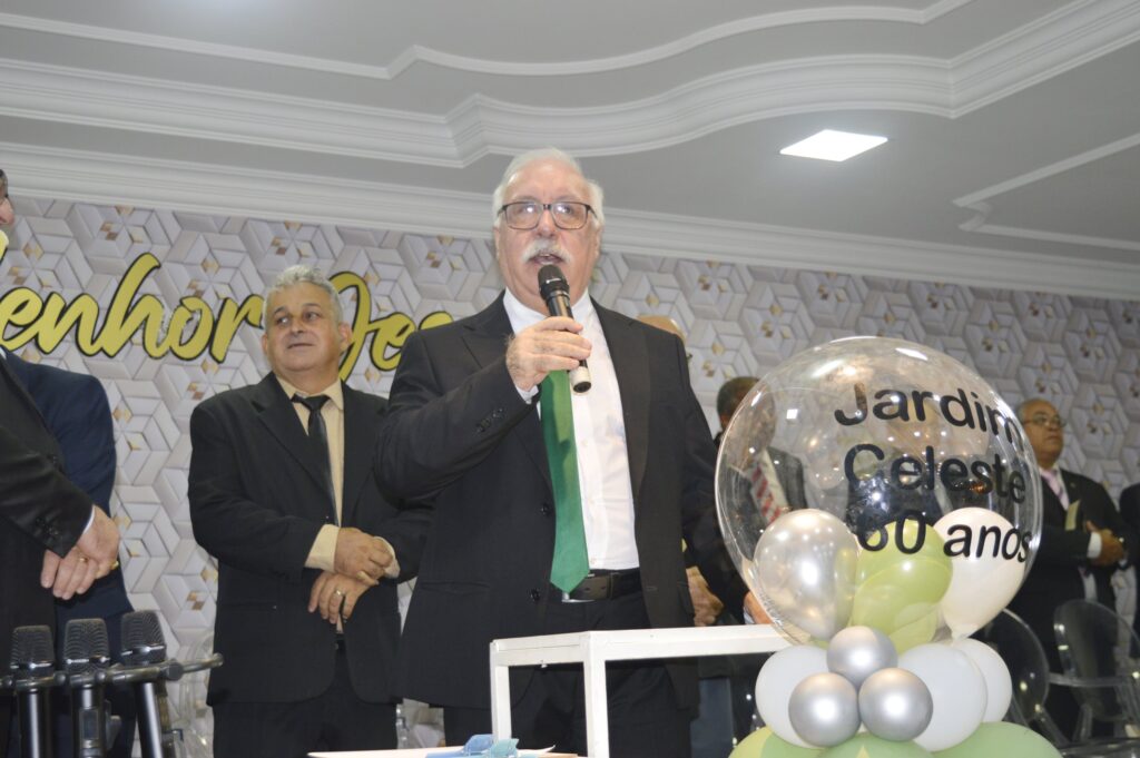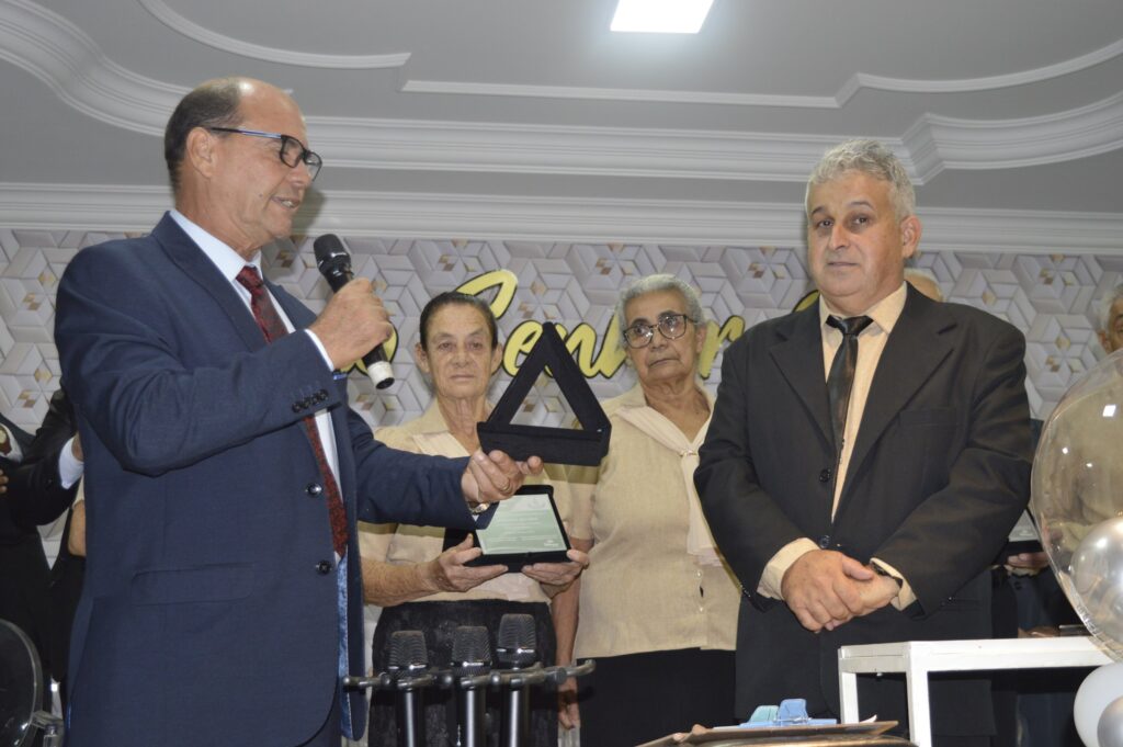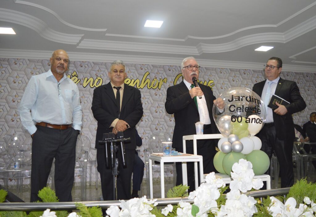 Durante a celebração, o presbítero Hélcio Andrade foi homenageado pelo brilhante trabalho que está desempenhando à frente do Coral Jardim Celeste. O pastor regional Nilton Silva fez a entrega da placa em reconhecimento a essa valiosa contribuição.
