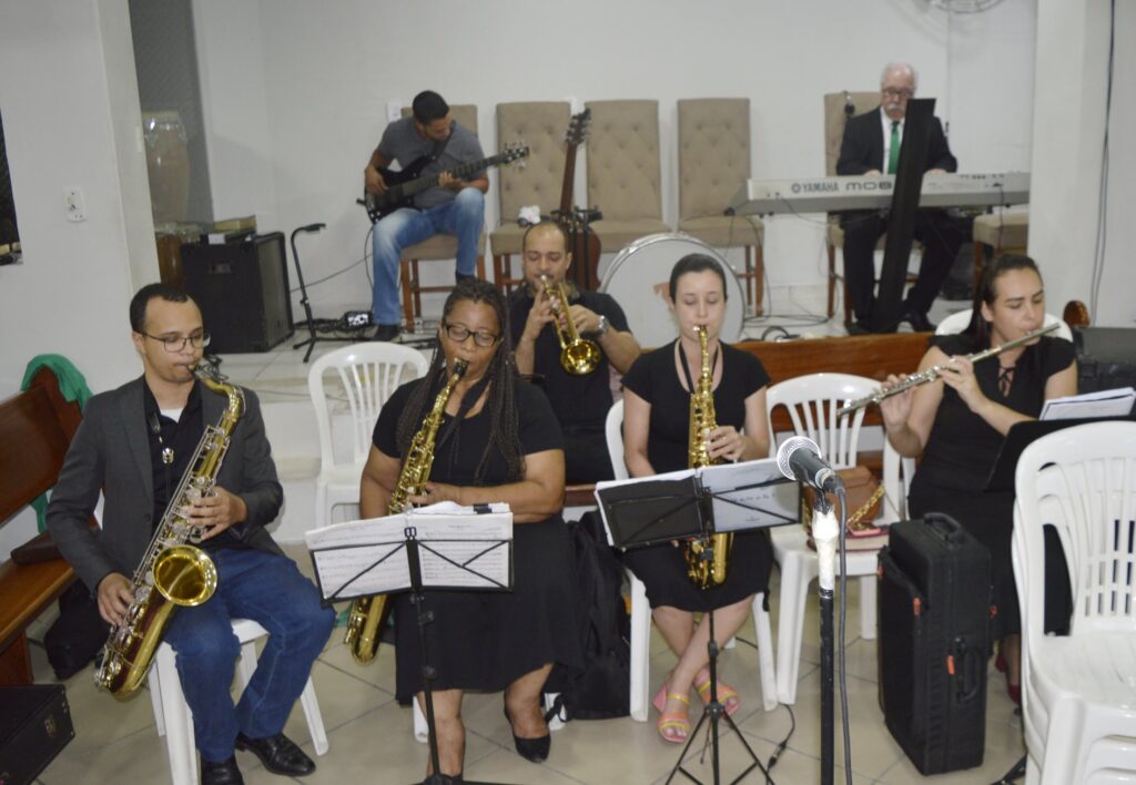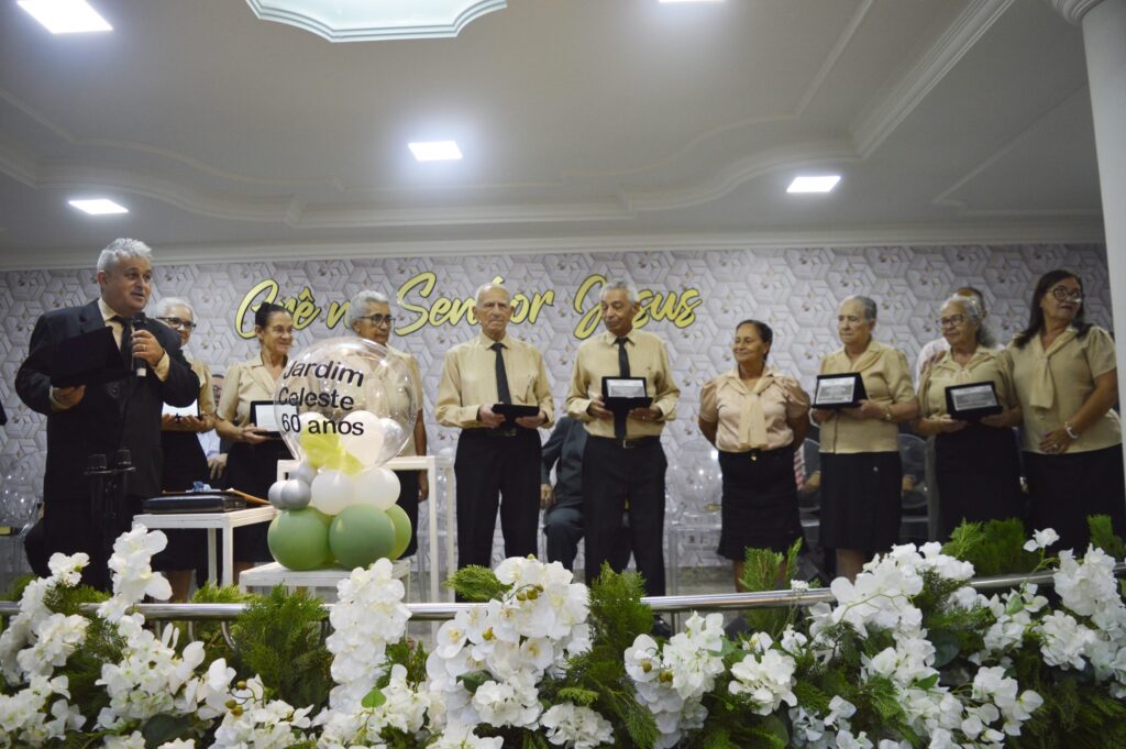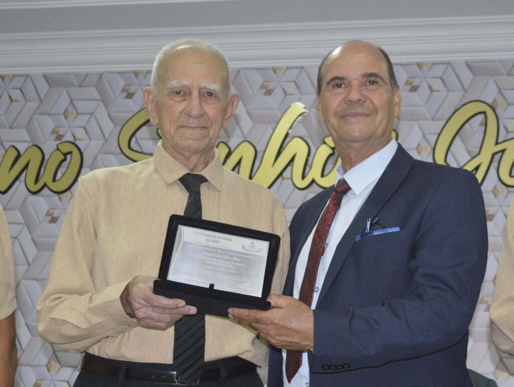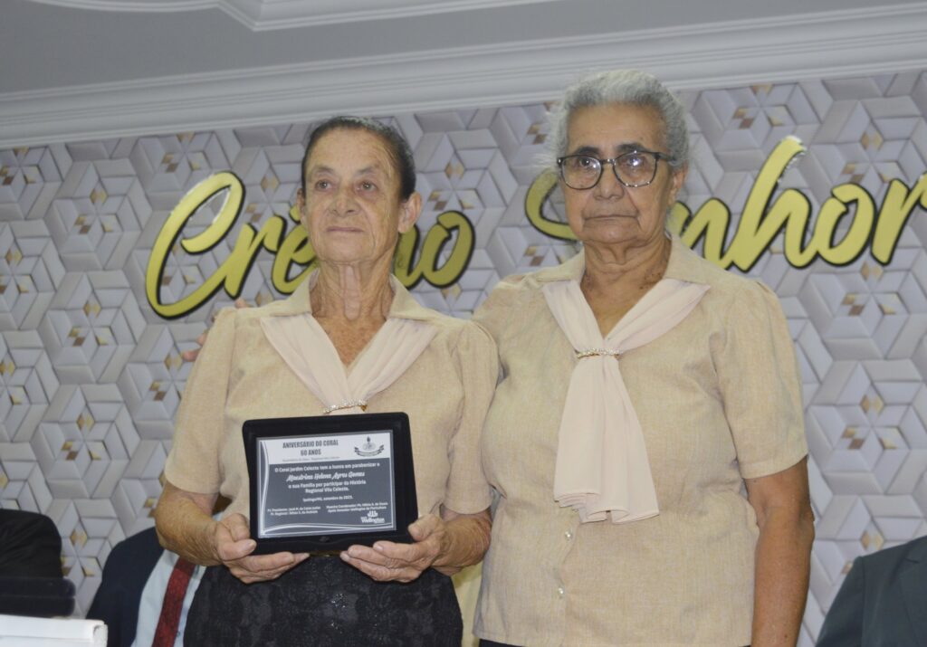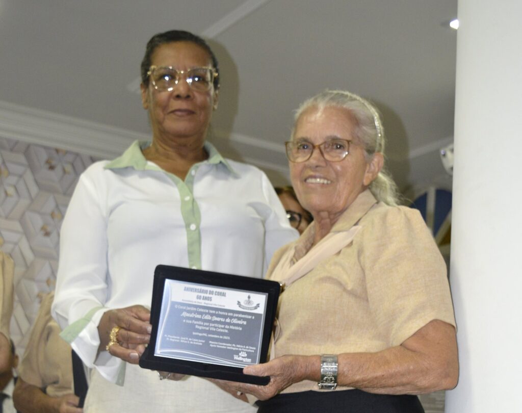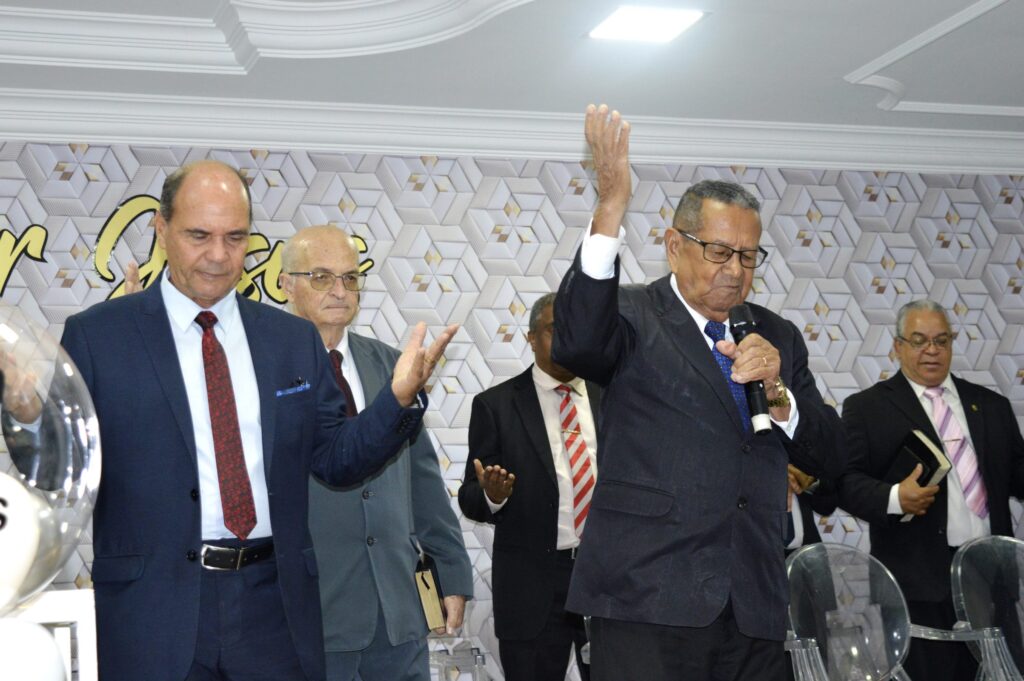 Durante a celebração, o presbítero Hélcio Andrade foi homenageado pelo brilhante trabalho que está desempenhando à frente do Coral Jardim Celeste. O pastor regional Nilton Silva fez a entrega da placa em reconhecimento a essa valiosa contribuição.