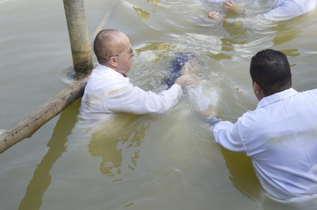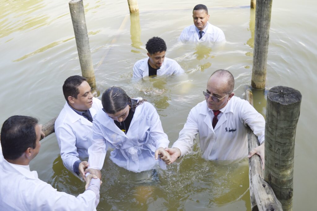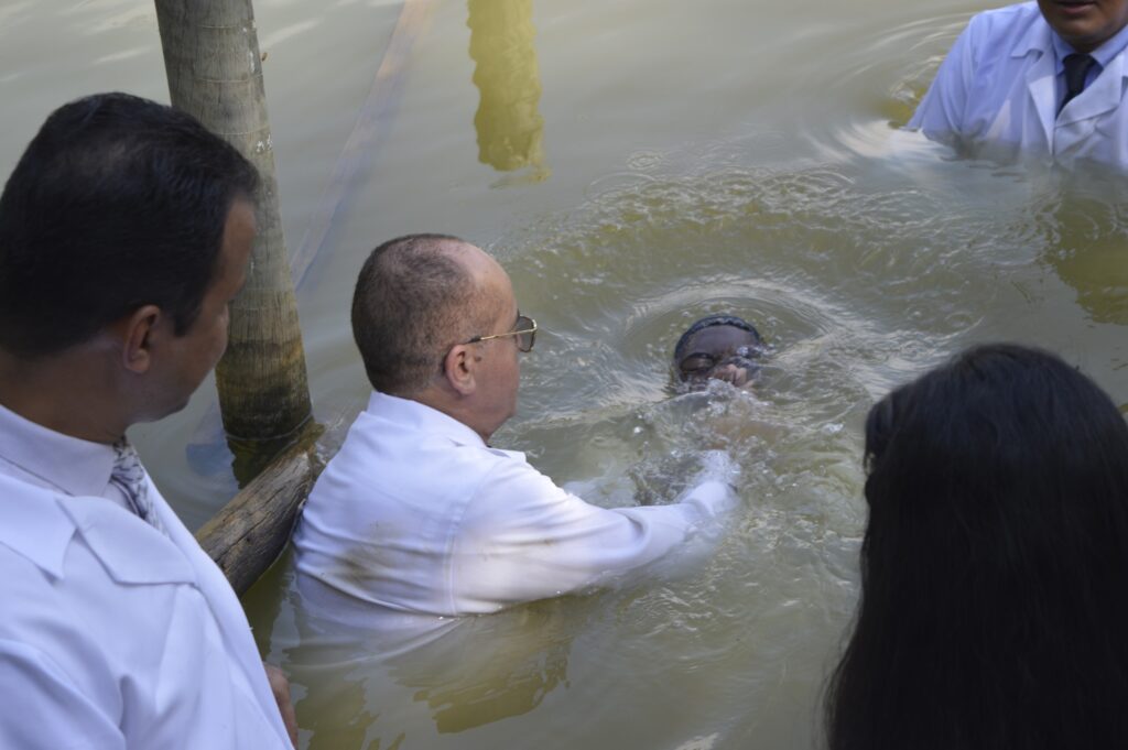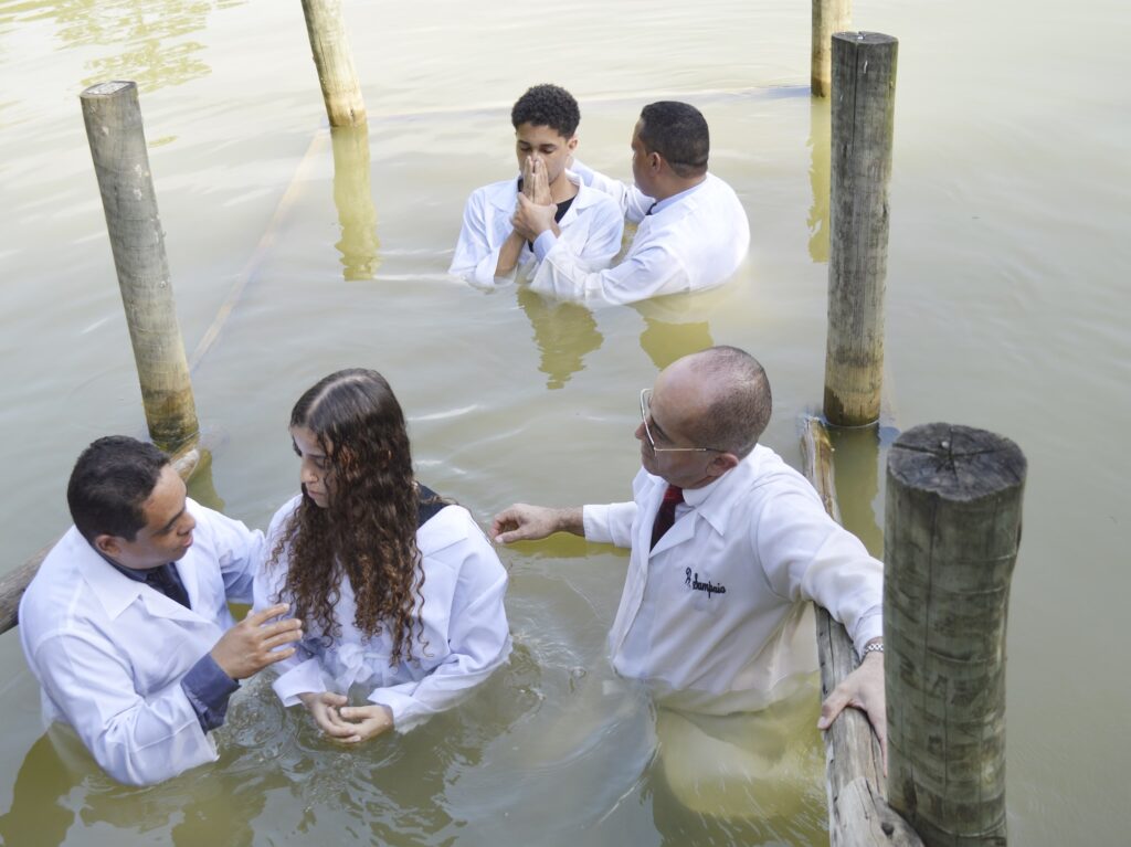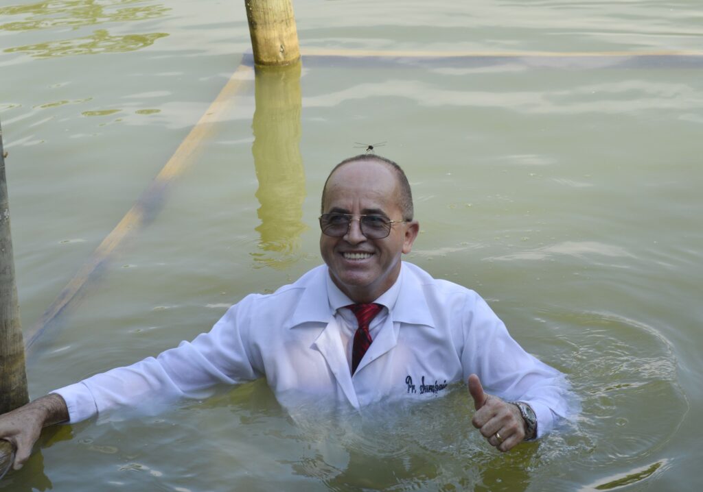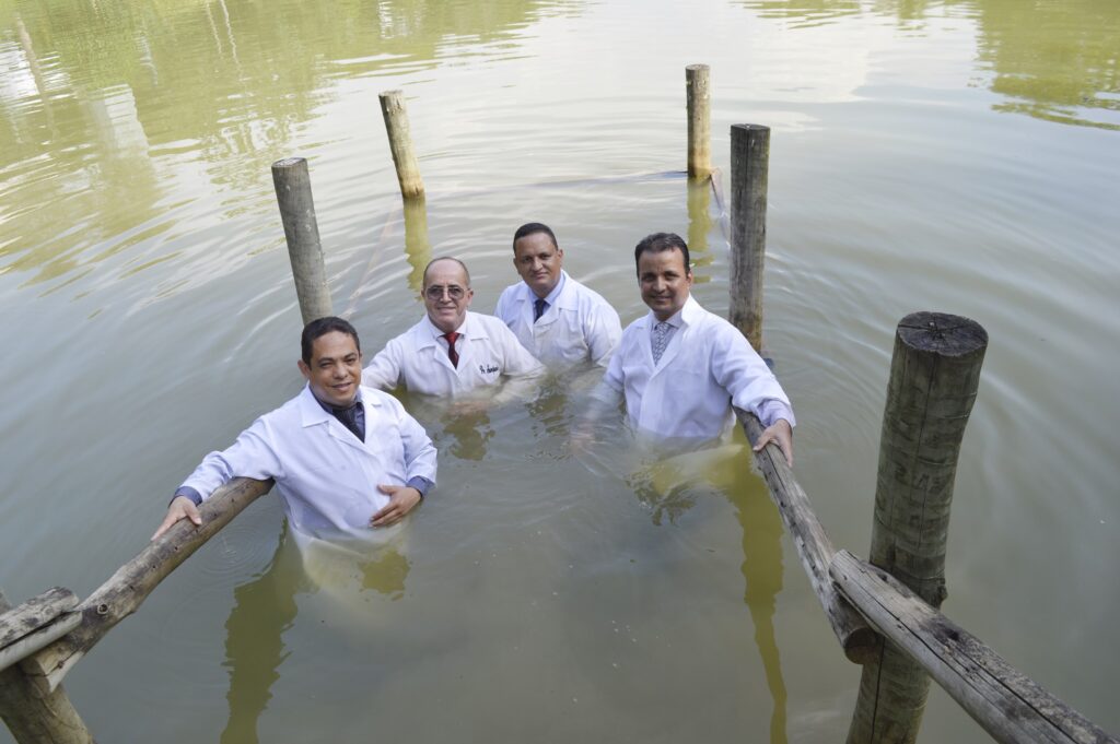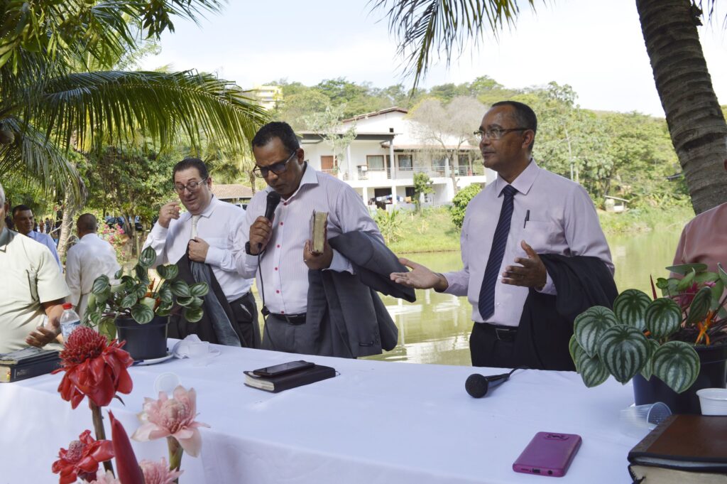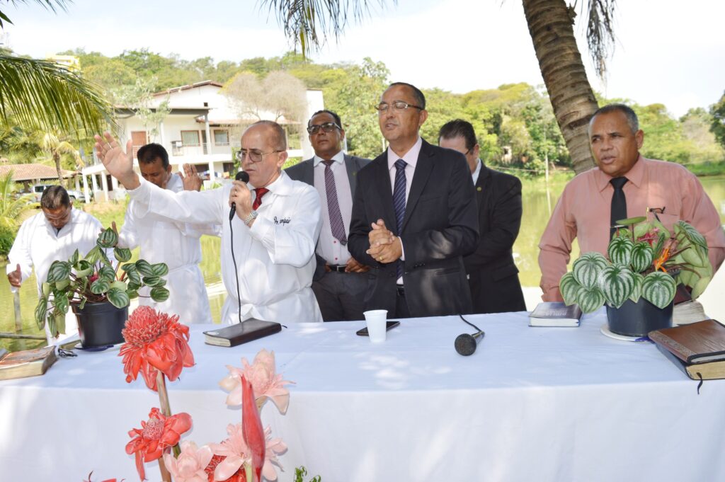 Os pastores Pr. Carlos Augusto, Pr. Sebastião Sampaio de Souza, Pr. WerleyCrey de Souza e Pr. Flavio Rigueira Godoy, foram os responsáveis pela realização do batismo.