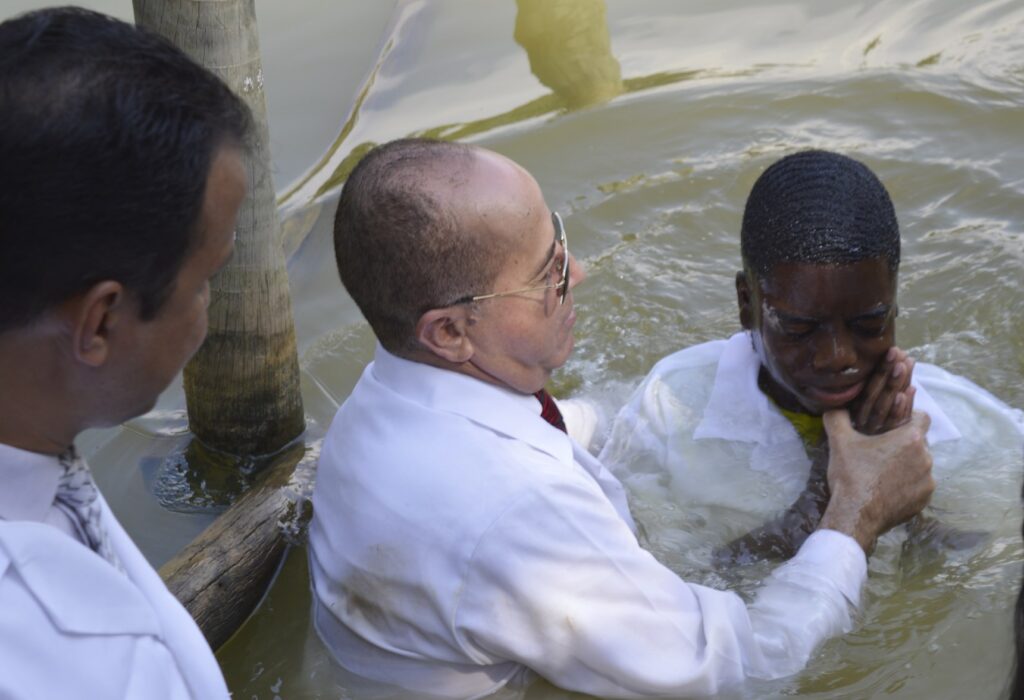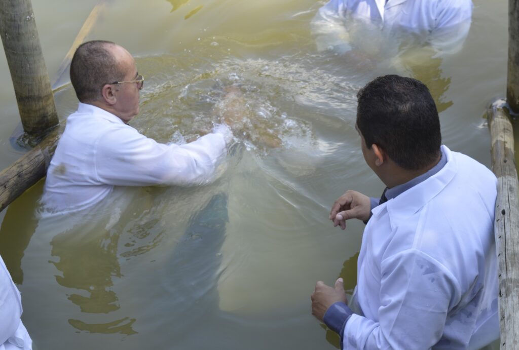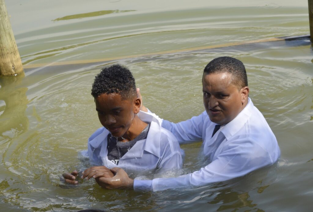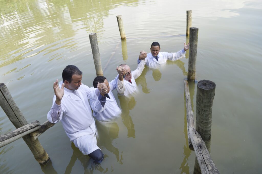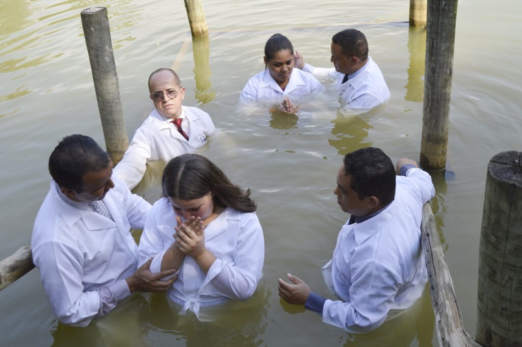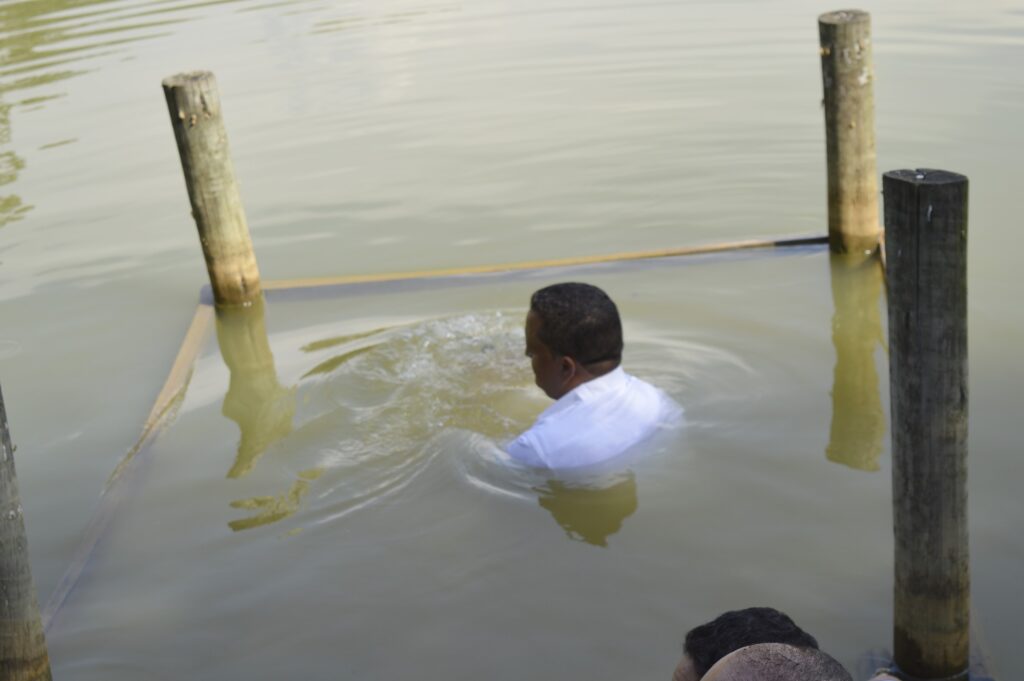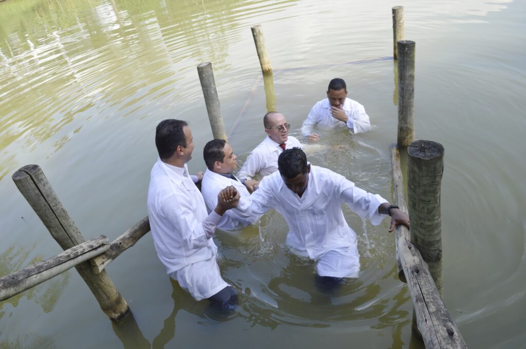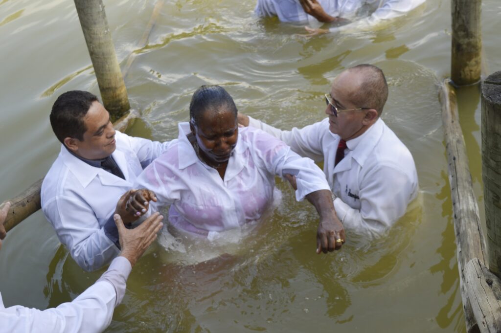 Os pastores Pr. Carlos Augusto, Pr. Sebastião Sampaio de Souza, Pr. WerleyCrey de Souza e Pr. Flavio Rigueira Godoy, foram os responsáveis pela realização do batismo.