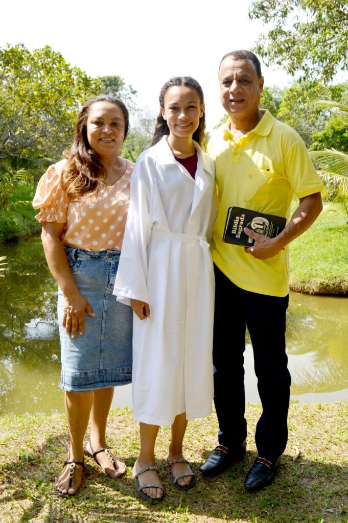 O Presbítero Wilson Barbosa de Oliveira e sua esposa, Alaíde Marques de Oliveira, sentem-se realizados e felizes ao testemunhar o batismo de sua filha, Kamile Marques de Oliveira. Eles compartilham: “É uma imensa alegria ver nossa filha sendo batizada, especialmente em um momento em que tantos jovens estão se perdendo na perdição e nas drogas. Ficamos profundamente felizes ao vê-la trilhando o caminho da igreja e servindo a Deus. Isso representa uma honra significativa para nós, servir a Deus e testemunhar o envolvimento de nossa família nesse propósito. Expressamos nossa profunda gratidão a Deus. Muito obrigado, que Deus abençoe a todos.”