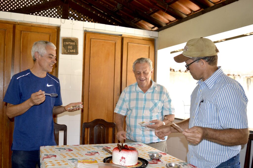 Ao meio-dia, a atmosfera festiva se intensificou com a presença da “Turma do Café”, um grupo de amigos que prestou homenagem ao aniversariante com um delicioso almoço acompanhado de churrasco. O Pr. Raimundo Ferreira liderou a organização, enquanto Geraldo do Mél, habilidoso churrasqueiro, garantiu que o momento fosse marcado pela excelência culinária.