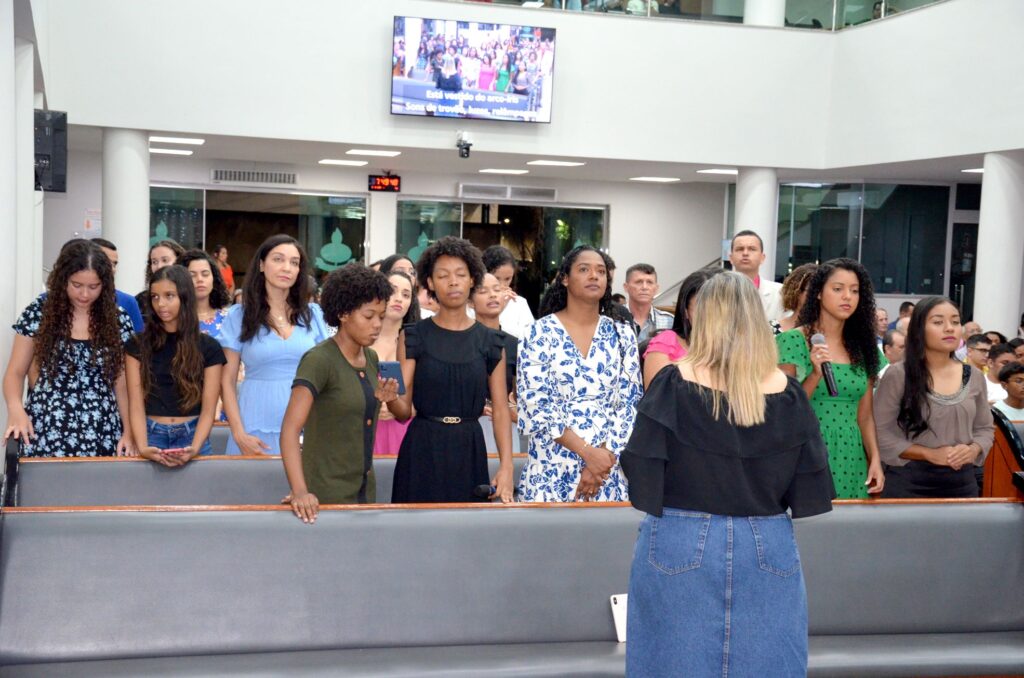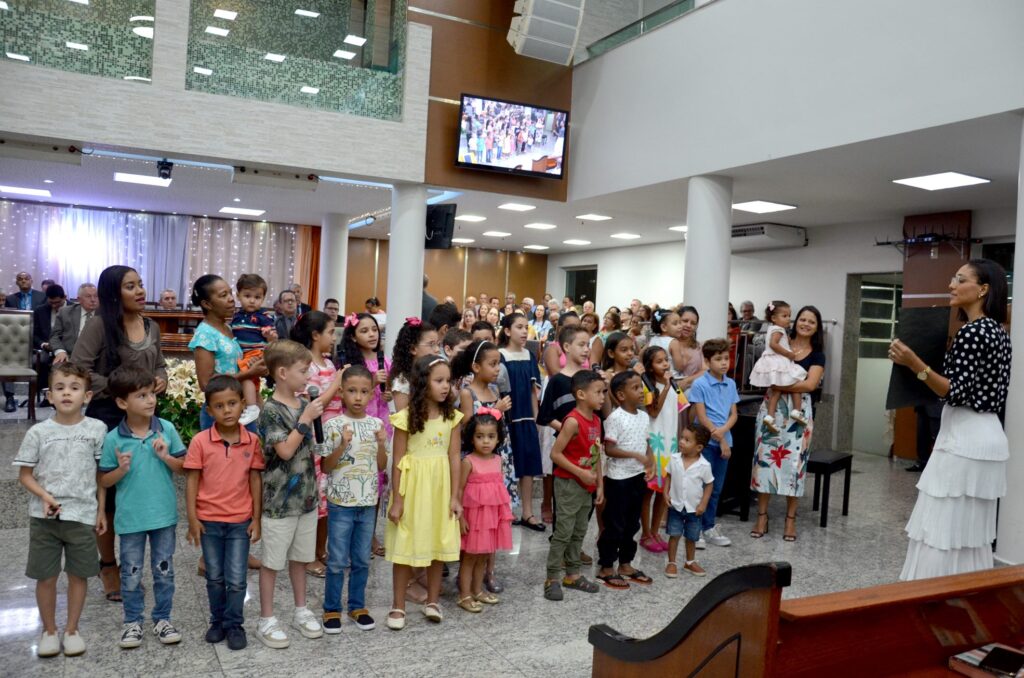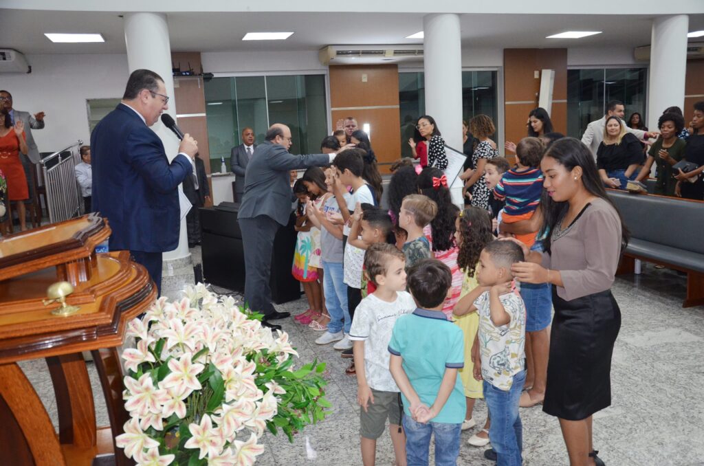 Após o momento de louvor, as crianças foram abençoadas com orações compartilhadas pelo pastor titular da igreja, Júlio Cesar Nogueira, e pelo pastor presidente, que também as abençoou impondo as mãos sobre elas.