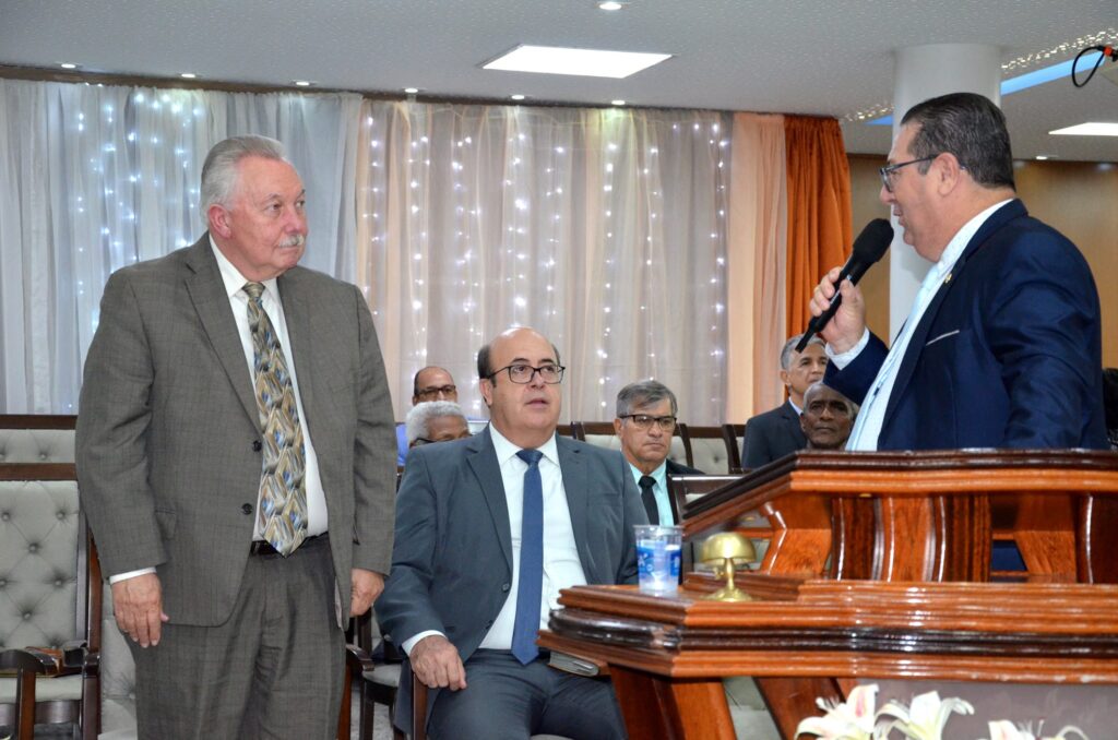 Após a leitura, o pastor regional titular da igreja e secretário do Ministério, Pr. Júlio Cesar Nogueira, fez as apresentações dos visitantes, enquanto a igreja dava as boas-vindas a todos com grande alegria.