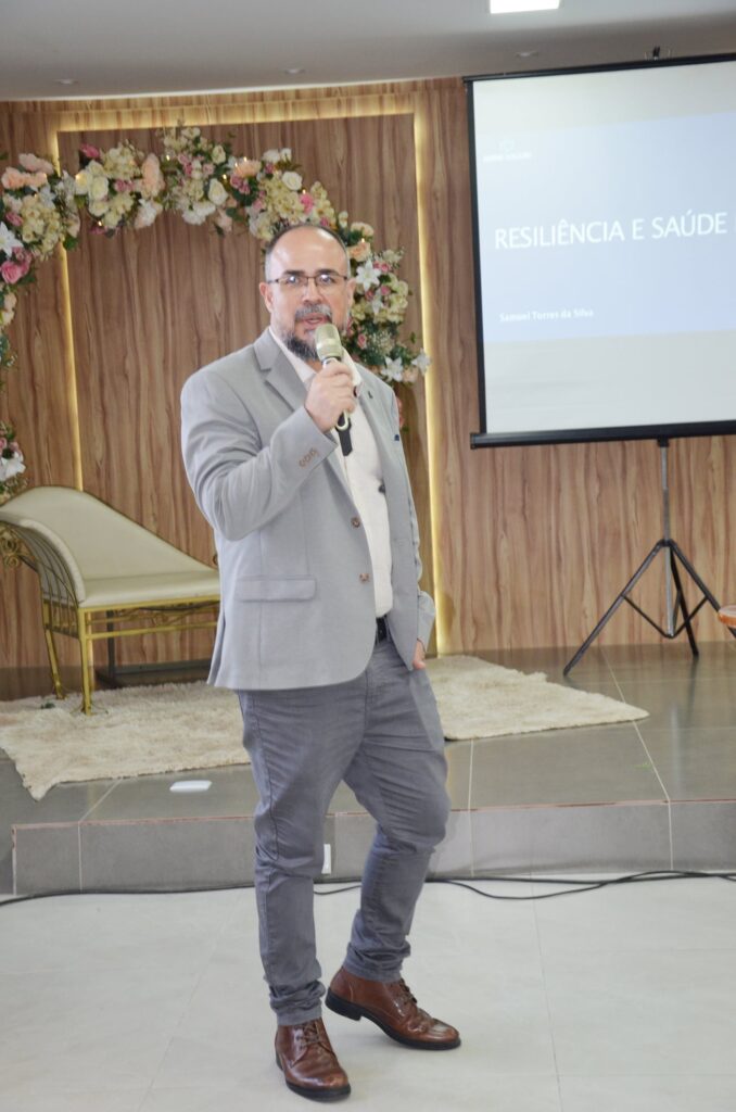 Leidiane deu início ao evento com louvor, junto com a equipe de louvor, e manteve a condução até o encerramento. O destaque do encontro foi uma palestra excepcional sobre o tema “Resiliência e Saúde Mental”, ministrada pelo Dr. Samuel Torres, médico psiquiatra com vasta experiência e conhecimento na área.