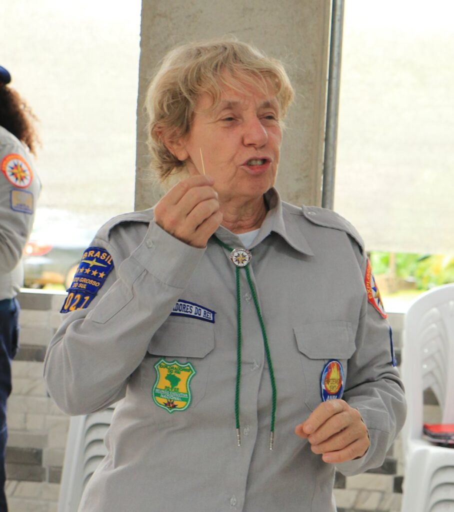 A Comandante Marilene Petrarca de Campo Grande, Mato Grosso do Sul, desempenha um papel fundamental no trabalho dos Exploradores do Rei, sendo responsável pela formação de adultos na Secretaria de Cursos e também fazendo parte da Academia Ministerial. Ao participar de eventos como o de hoje e ver uma turma formada, ela expressa sua emoção e felicidade, sentindo-se gratificada ao perceber quantas pessoas estão compreendendo melhor a essência dos Exploradores do Rei e se tornando parte desse grande exército do Senhor, com o objetivo de alcançar não apenas as crianças, mas também suas famílias.
