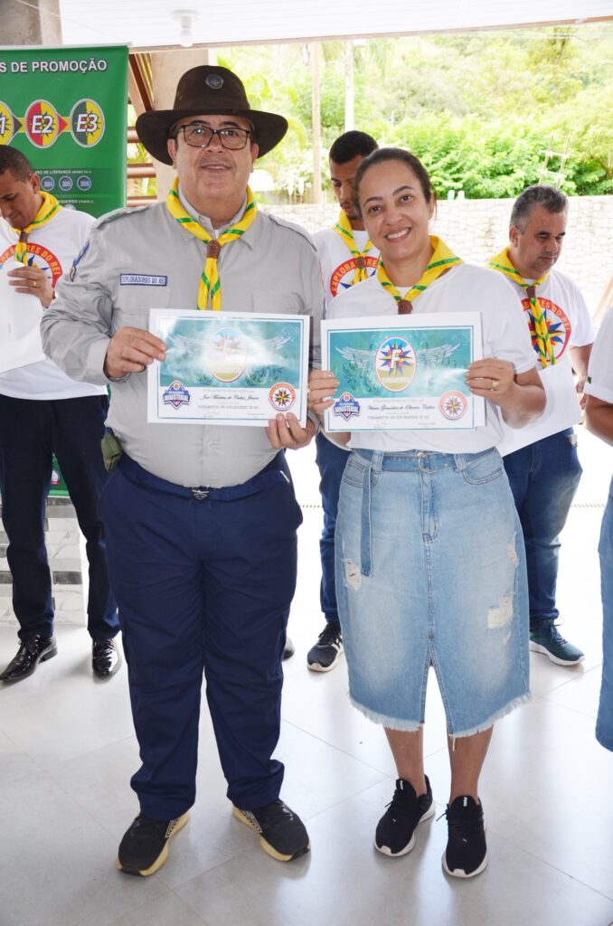 Ao término do curso, ocorreu a cerimônia de certificação dos alunos, onde receberam o lenço simbólico que representa a promessa feita durante o treinamento, juntamente com o certificado de conclusão do curso.