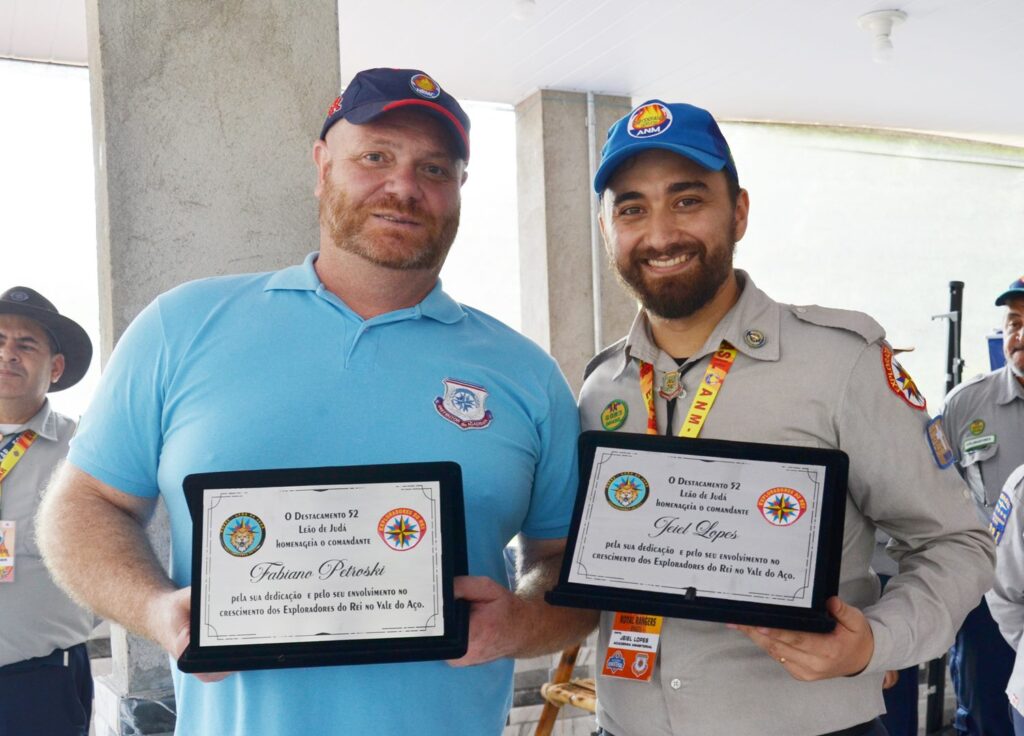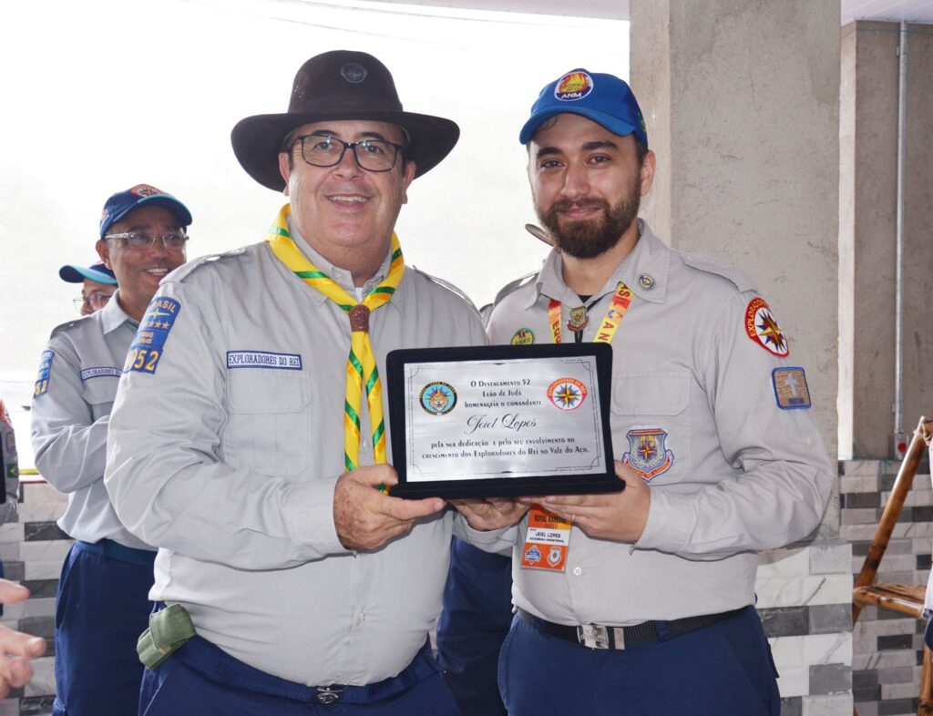 Os Exploradores do Rei e o Destacamento 52 Leão de Judá prestaram uma merecida homenagem ao comandante Jeiel Lopes, reconhecendo sua dedicação fundamental no crescimento e desenvolvimento dos Exploradores do Rei no Vale do Aço. Além disso, também destacaram o trabalho exemplar do comandante Fabiano Petroski, ressaltando sua contribuição para a causa.
