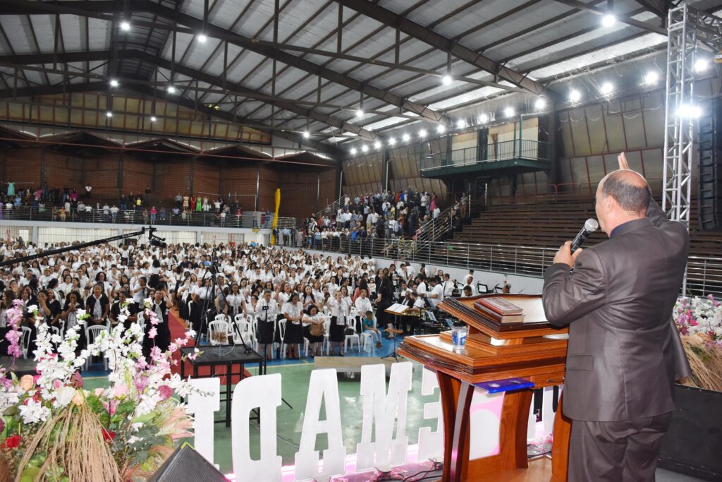 O congresso começou com uma cerimônia emocionante de abertura, liderada pelo presidente da igreja, Pr. José Martins de Calais Junior, que conduziu a leitura bíblica e destacou a importância de seguir a vontade de Deus, manifestando o poder do Espírito Santo durante todo o evento.