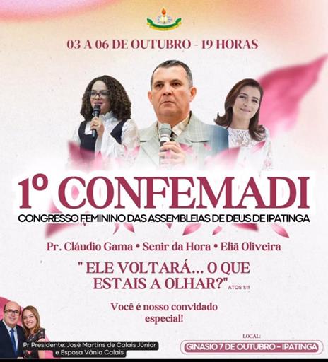 A Assembleia de Deus Ministério Coronel Fabriciano Ipatinga deu início ao seu 1º Congresso Feminino das Assembleias de Deus de Ipatinga (CONFEMADI), um evento grandioso que tem como foco a espiritualidade, oração, e o empoderamento das mulheres da igreja.
