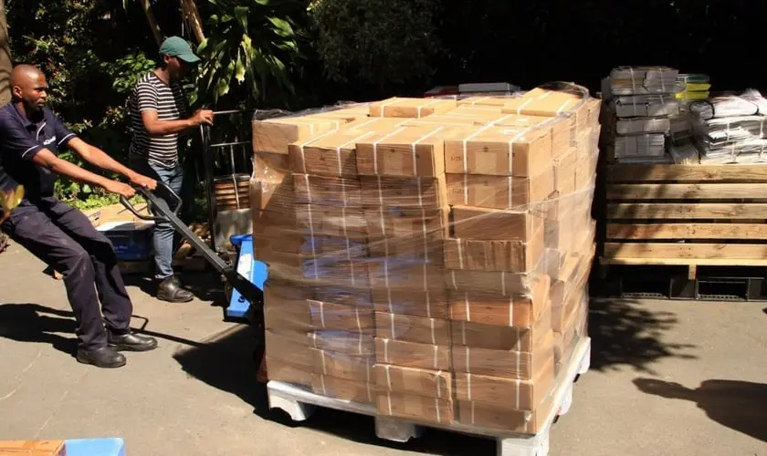 Livretos evangelísticos sendo transportados. (Foto: Reprodução/Facebook/World Missionary Press)