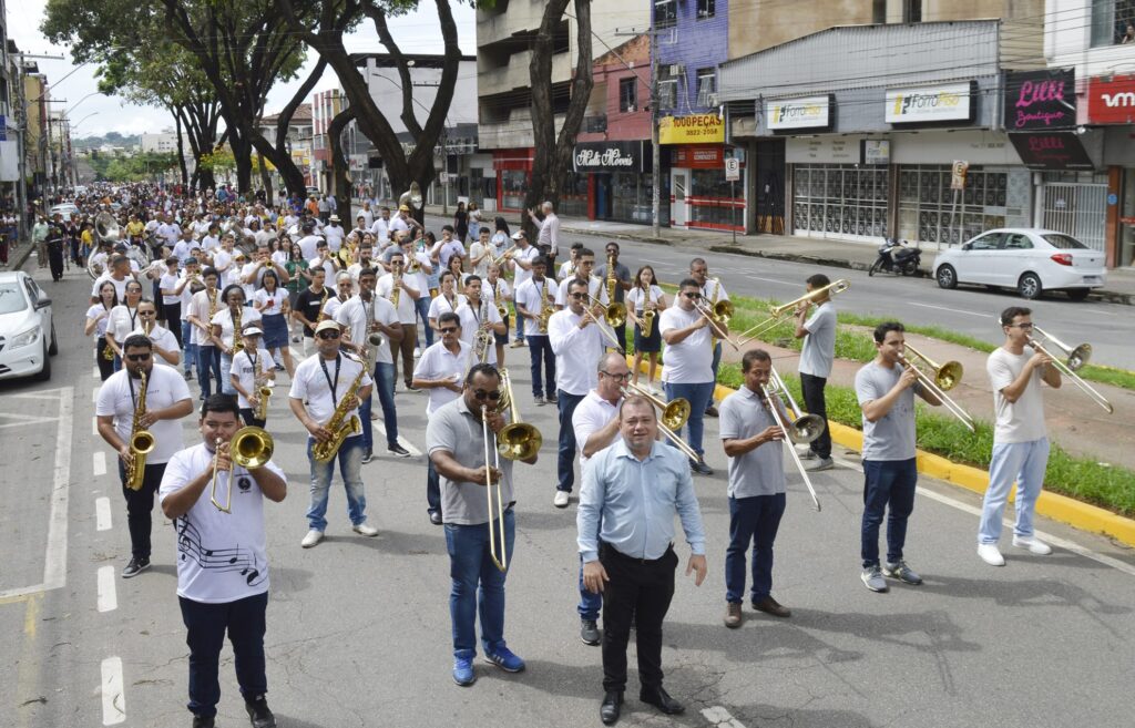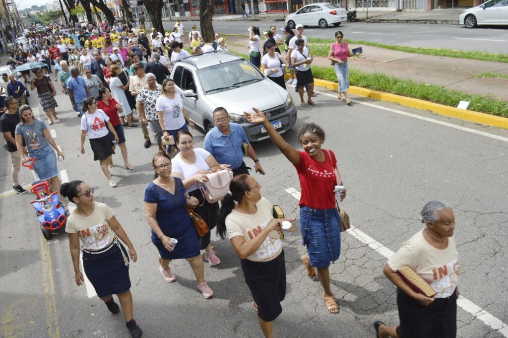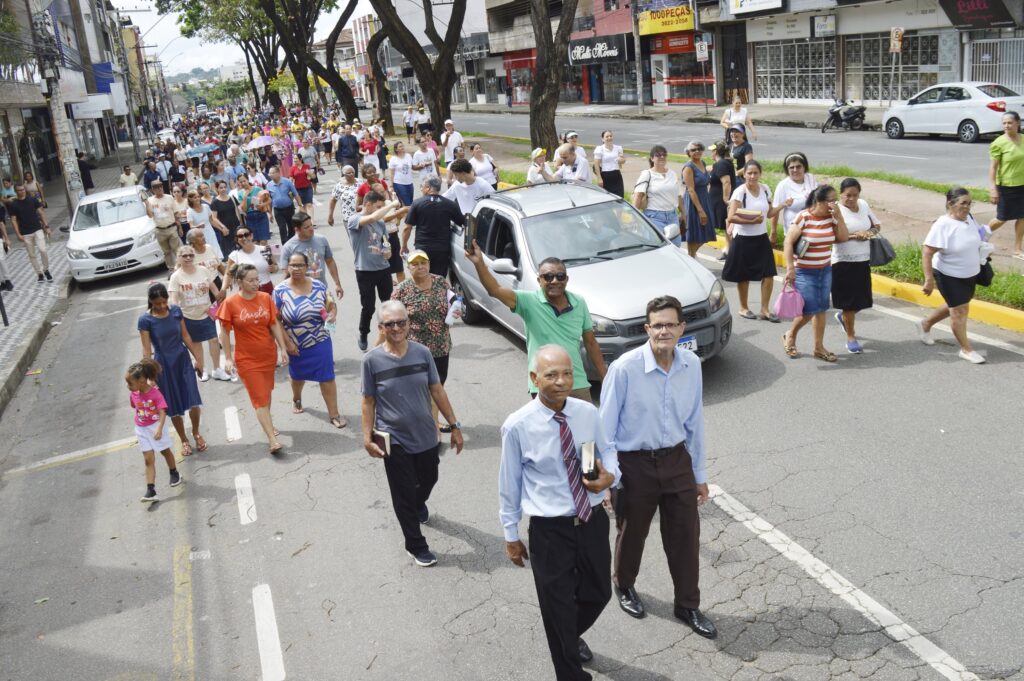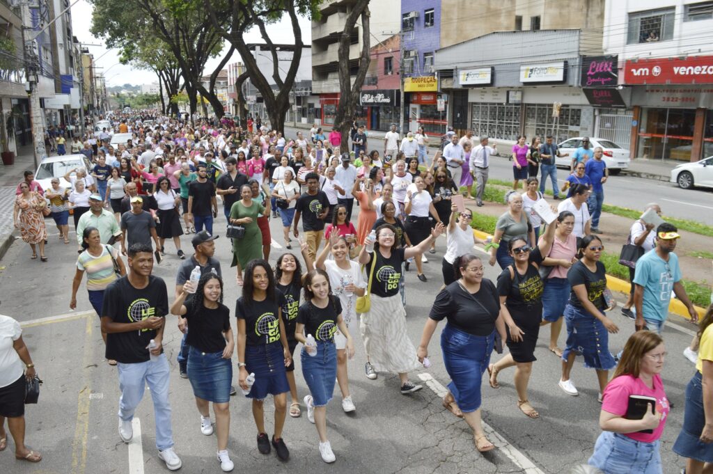 O evento reuniu milhares de fiéis para um desfile que partiu da Praça Maria Fumaça, passando pelas Avenidas Macapá e JK, até o trevo que conecta os bairros Jardim Panorama e Caçula, culminando em uma concentração repleta de louvor, oração e mensagens edificantes.