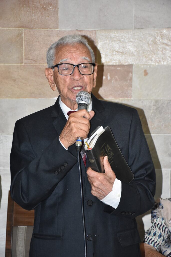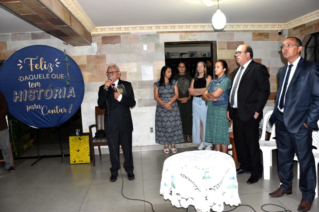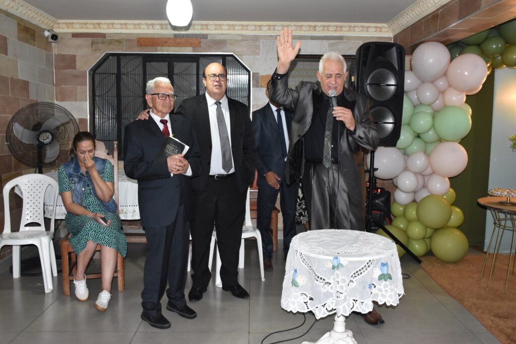 Ao assumir a palavra, Pr. José destacou a alegria em poder realizar a homenagem em comum acordo com a família e enfatizou o compromisso contínuo de orar pelo pastor Antônio Rosa e sua esposa, irmã Luzia. Citando Filipenses 1:3-6, lembrou que “aquele que começou a boa obra” permanece fiel para completá-la, exaltando o exemplo de fé, dedicação e perseverança deixado pelo homenageado.
