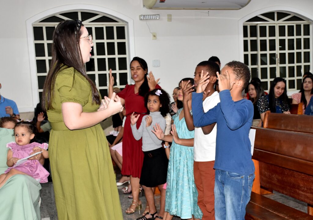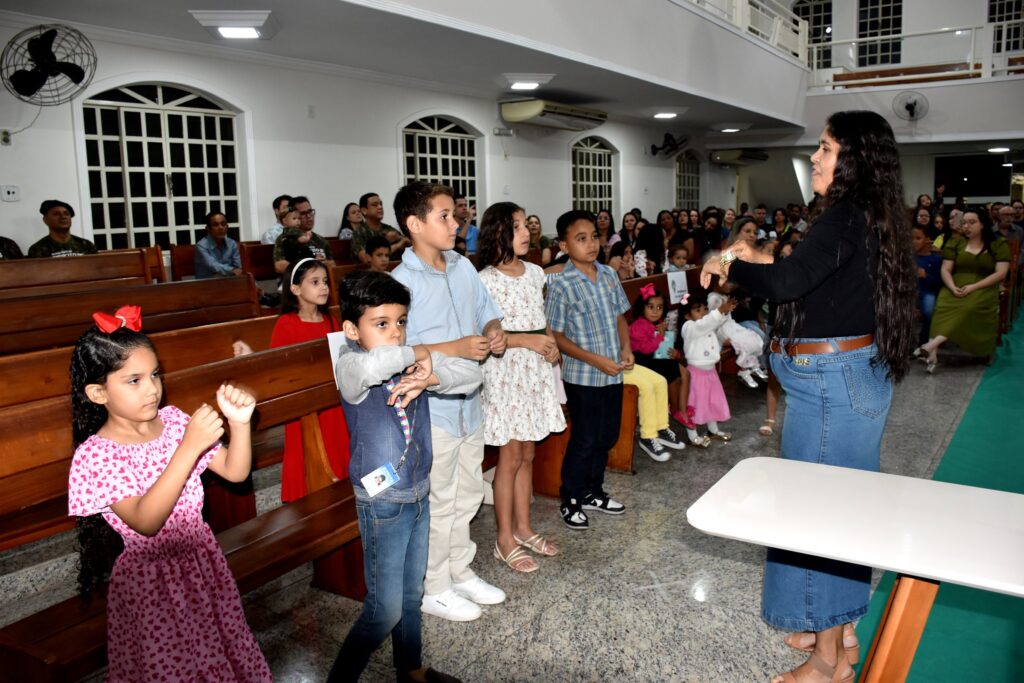 Um gesto de gratidão especial também foi dirigido aos pais que acompanharam seus filhos nos ensaios e celebrações, evidenciando a importância da família como base do discipulado infantil.
