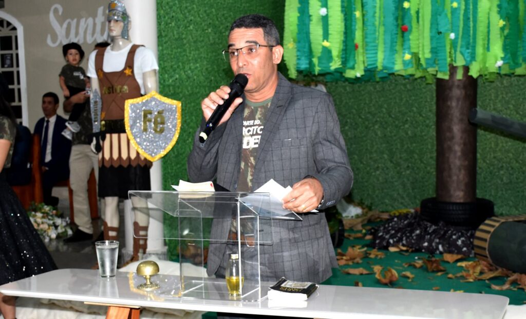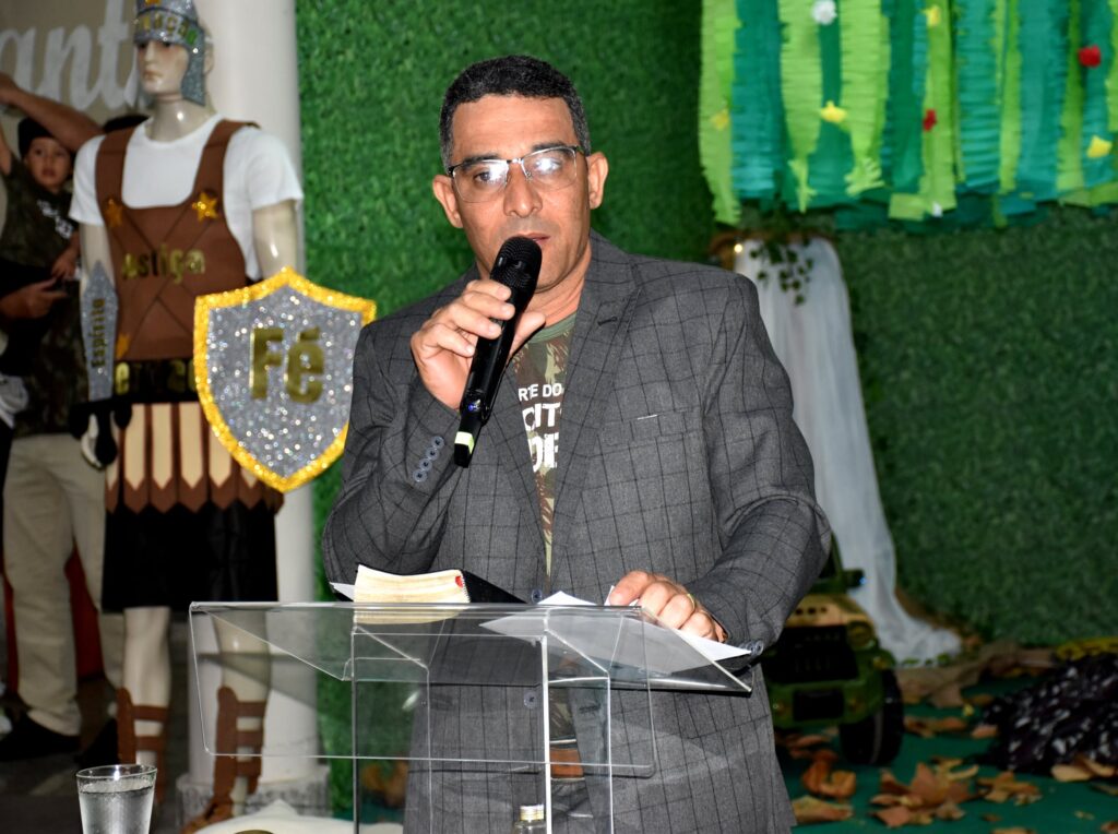 O pastor Romilson foi responsável por conduzir as apresentações da noite, recebendo a todos com muito carinho e dedicação. Com sua atenção e cuidado, acolheu os presentes de forma especial, tornando cada momento ainda mais significativo e caloroso.