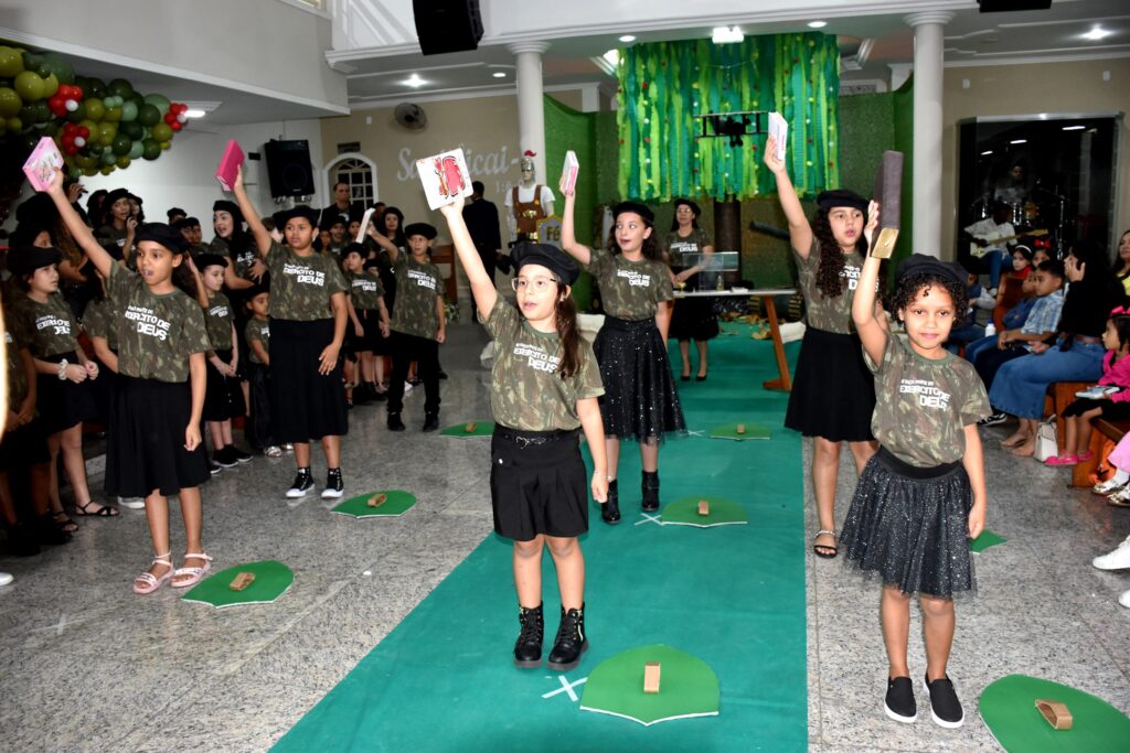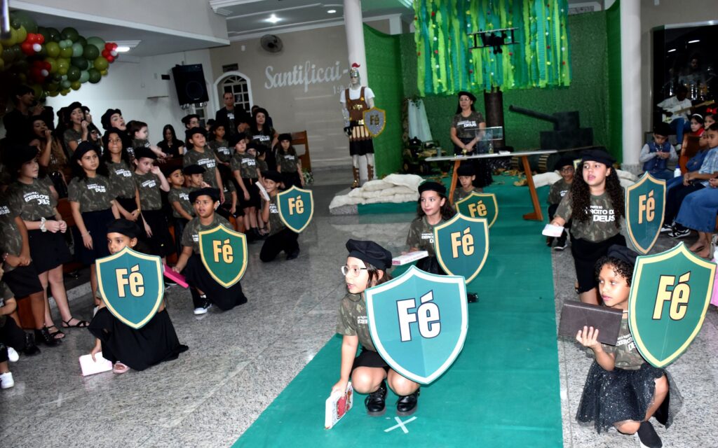 Com o tema “Eu faço parte do Exército de Deus”, inspirado em Efésios 6.10-20, a festividade contou com a participação da preletora Tia Keila, pedagoga, vereadora em Contagem (MG), com mais de 20 anos de atuação no ministério infantil e idealizadora do Programa @protegedosocial. Suas mensagens trouxeram impacto e inspiração tanto para crianças quanto para os pais, destacando a importância da formação espiritual da nova geração.