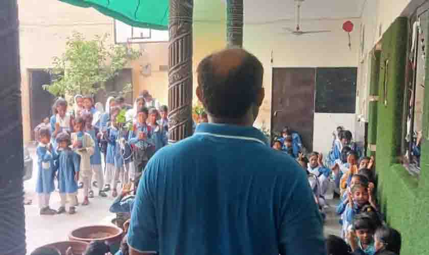 Shamshad Masih ministrando a crianças. (Foto: Arquivo pessoal cedido ao Guiame)