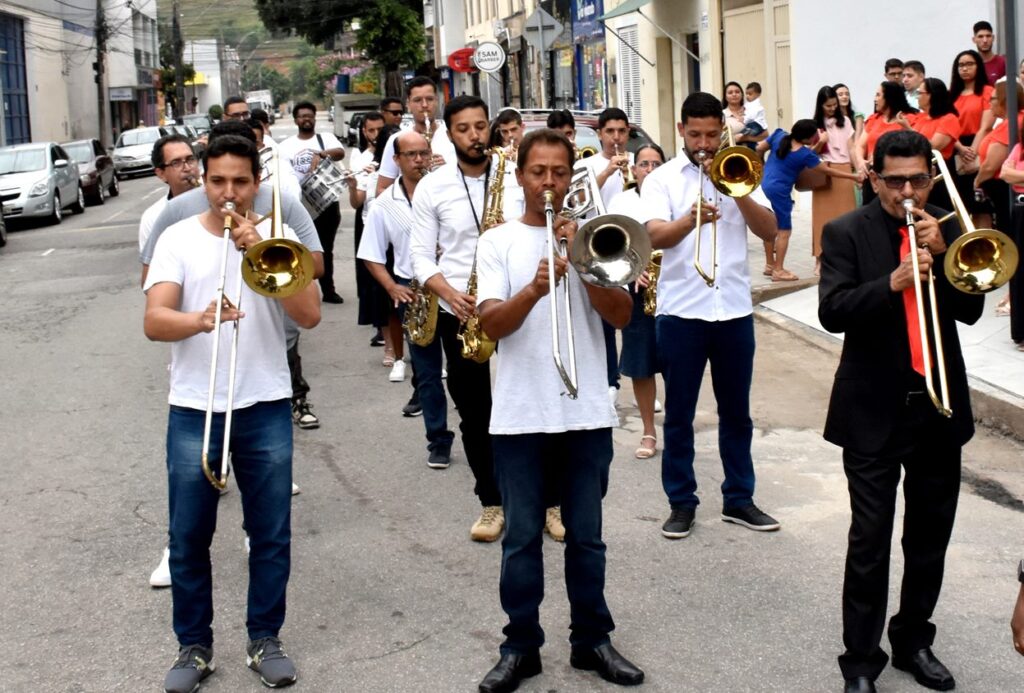As festividades começaram logo pela manhã, com um desfile pelas principais ruas do bairro, acompanhado pela banda de música do ministério, que conduziu os louvores até a chegada ao templo totalmente revitalizado.