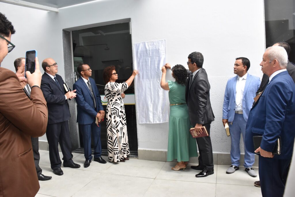 Após a oração conduzida pelo 2º secretário, Pr. Werleykrey de Souza, a solenidade prosseguiu com o descerramento da placa comemorativa.