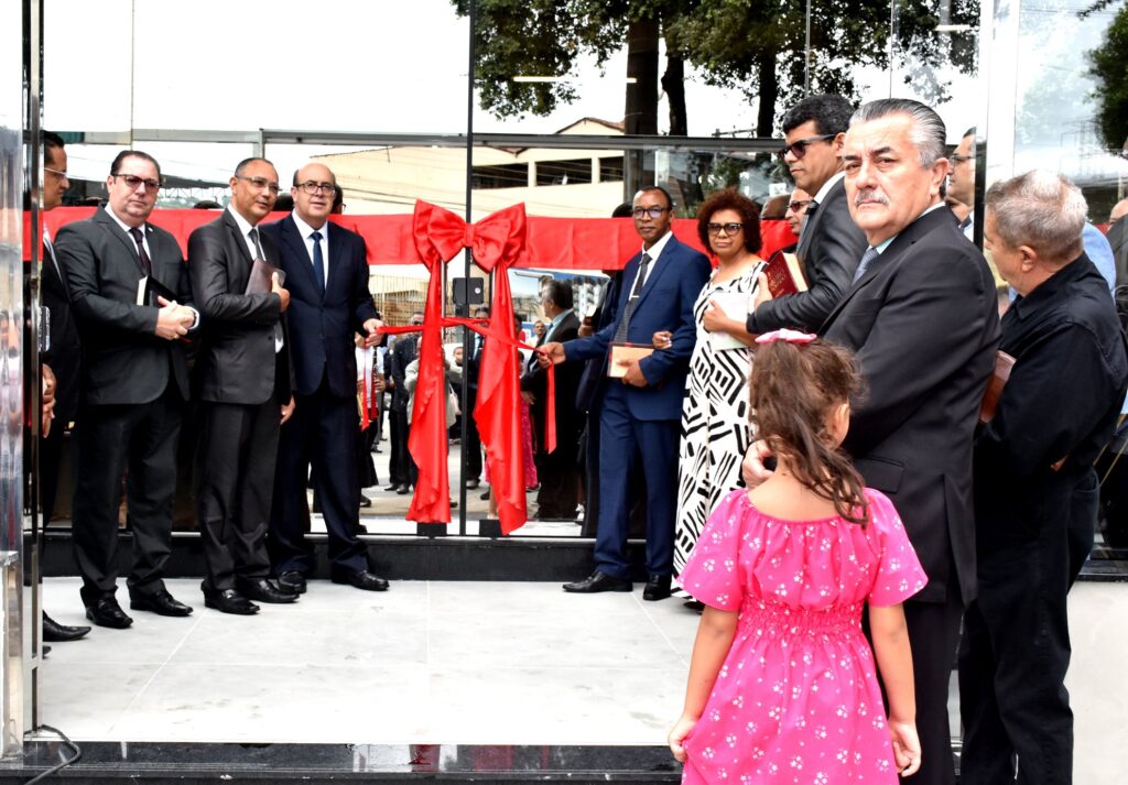 Em seguida, houve o corte da fita inaugural na entrada do templo, marcando o momento simbólico da reinauguração.