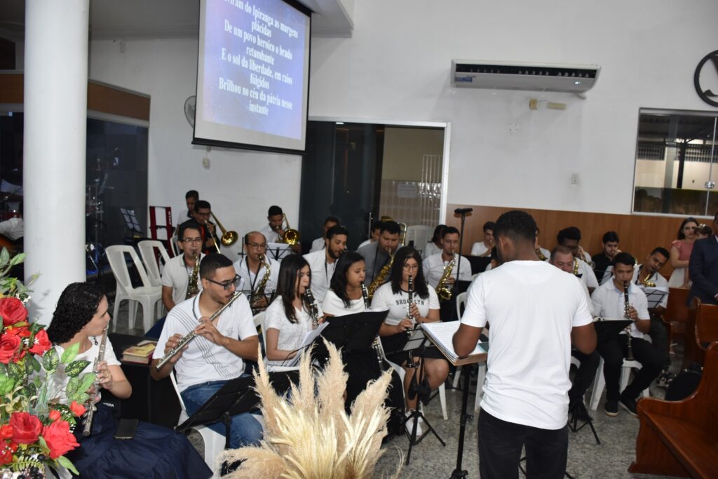 Sob o som da banda de música, o presidente, acompanhado do vice-presidente, obreiros e fiéis, adentrou o santuário em clima de júbilo, entoando cânticos de louvor e gratidão a Deus.