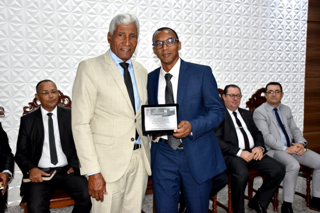 O Evangelista Erbet Amâncio entregou uma placa de reconhecimento ao presidente do ministério.