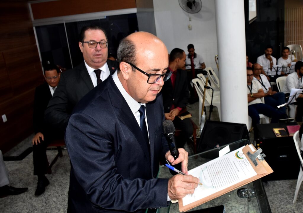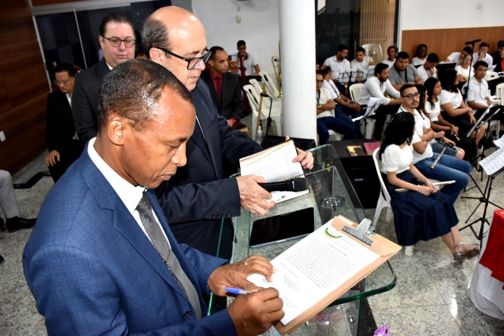 Encerrando a cerimônia, o Pr. Júlio César Nogueira procedeu à leitura da ata de reinauguração, registrando oficialmente o ato solene que marcou uma nova etapa na história da Assembleia de Deus Regional do Bairro Iguaçu.