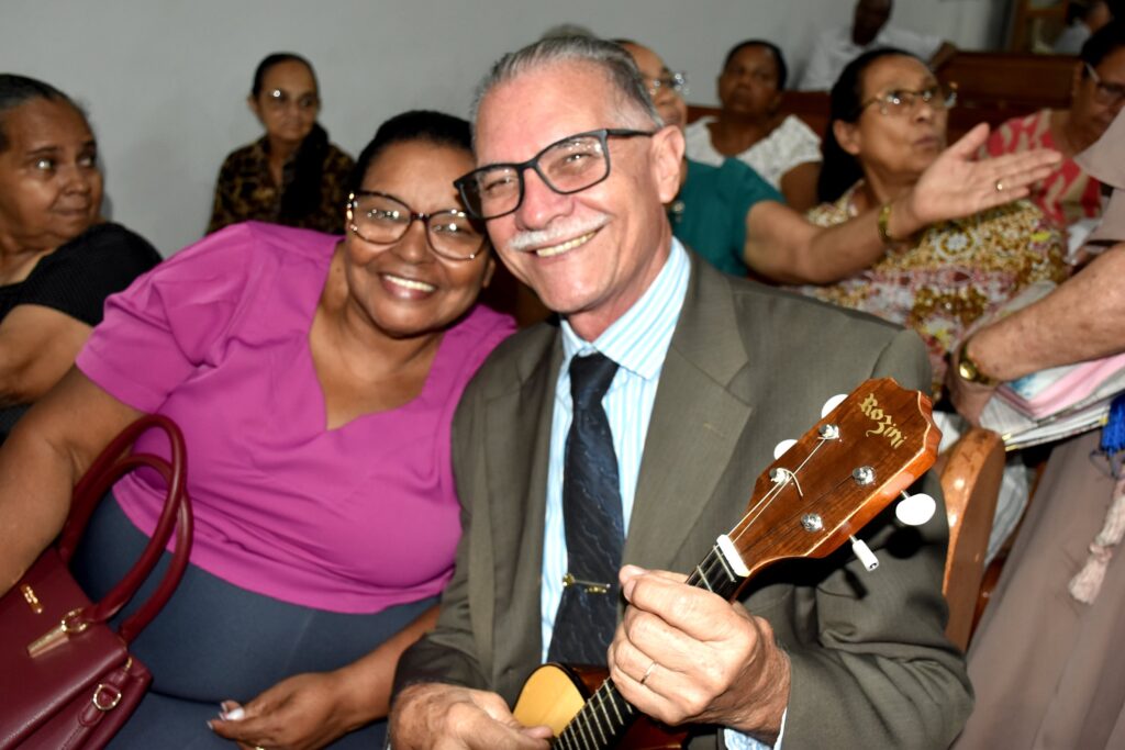A esposa do aniversariante, Maria Aparecida Rodrigues ao assumir a palavra, expressou profunda gratidão pelo momento especial. Emocionada, destacou que, no dia em que o esposo celebra mais um ano de vida, sentia-se à vontade para compartilhar palavras de reconhecimento e carinho. Agradeceu primeiramente a Deus e, em seguida, à Igreja, ressaltando o acolhimento e o carinho recebidos ao longo dos quase três anos em que a família está na congregação.