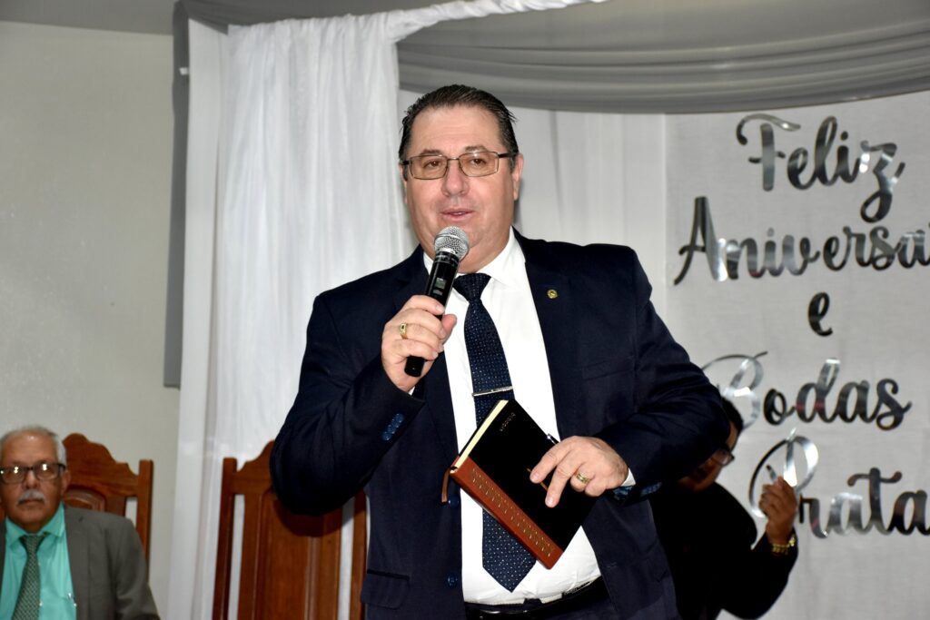 A abertura da liturgia foi dirigida pelo pastor Joel Francisco, que expressou sua alegria em participar do momento e homenageou o pastor Givanildo: “Estou muito feliz pela oportunidade de estar nesta igreja para agradecer a Deus pela vida do pastor desta congregação. Ele é um amigo de muitos anos. Que Deus lhe conceda muitos anos de vida. Parabéns ao casal pelas Bodas de Prata.” Em seguida, convidou a igreja a ler o Salmo 128, destacando a bem-aventurança daquele que teme ao Senhor, e conduziu a igreja em oração.