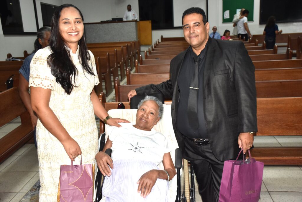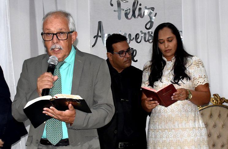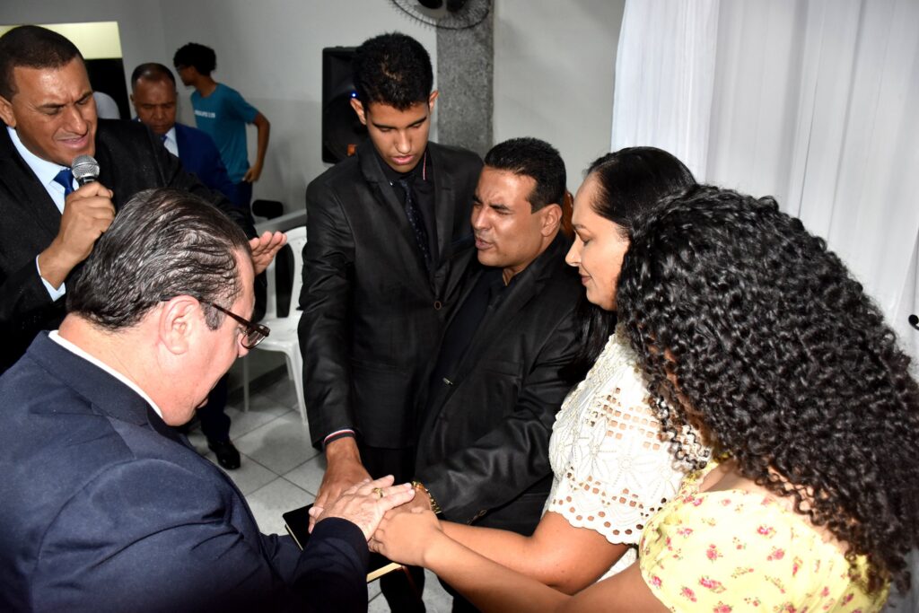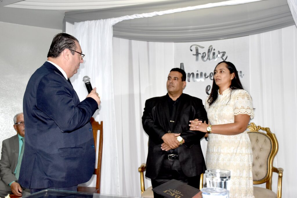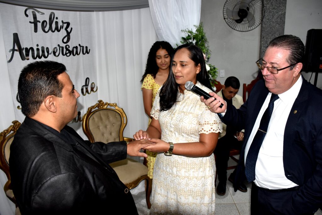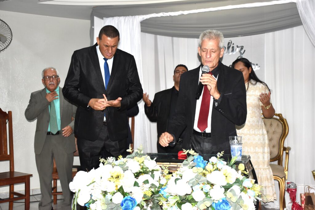 A cerimônia de renovação dos votos emocionou a todos. O filho do casal levou as alianças ao altar, enquanto o pastor Joel Francisco orava consagrando o momento. O pastor regional Reginaldo também intercedeu pela família.