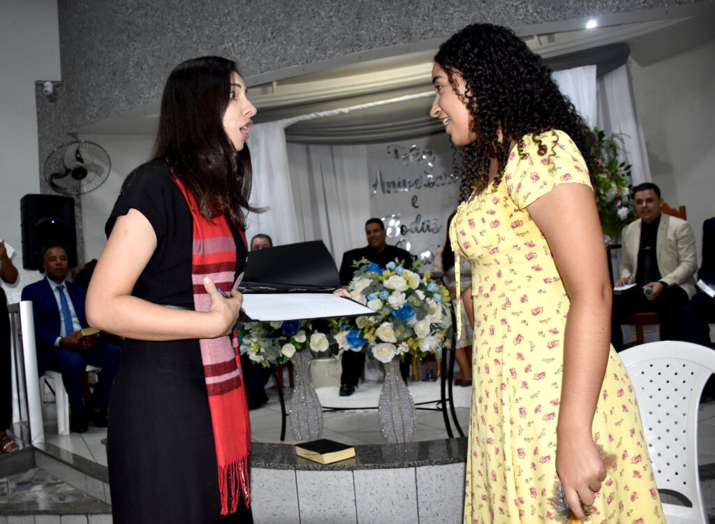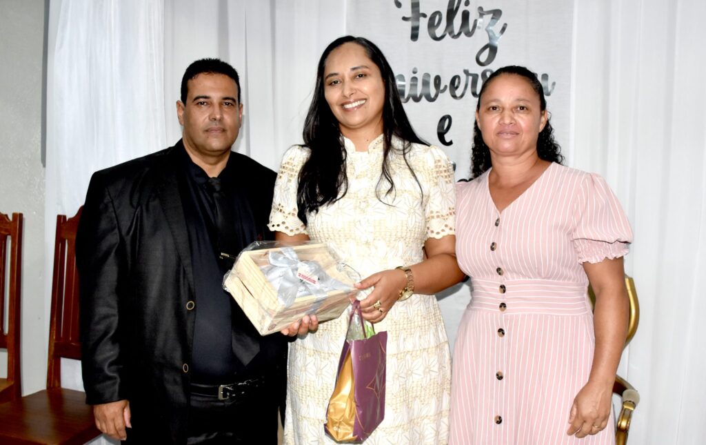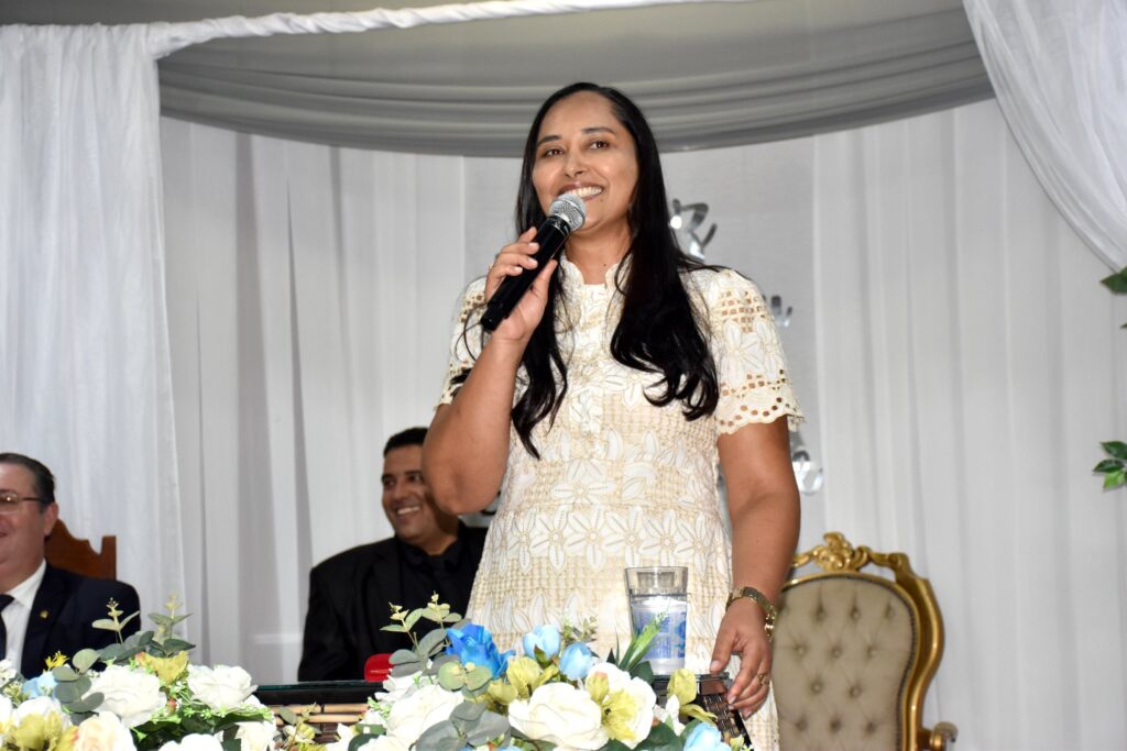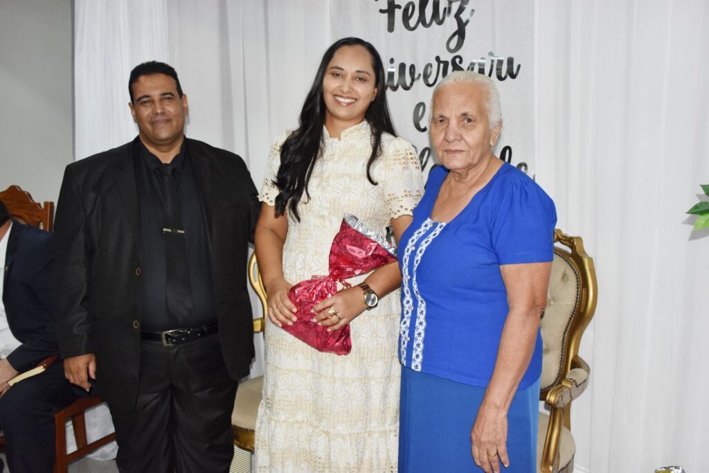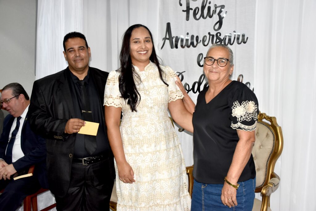 Quero agradecer ao pastor Júnior Calais e ao pastor que veio representando o Ministério; suas palavras sempre trazem sabedoria e edificação. Agradeço também ao nosso pastor regional. E meu carinho especial ao meu esposo, por sua dedicação tão romântica — mesmo eu não sendo romântica, ele faz questão de ser, e isso me alegra. Agradeço também aos meus filhos, que são bênçãos em nossa vida.