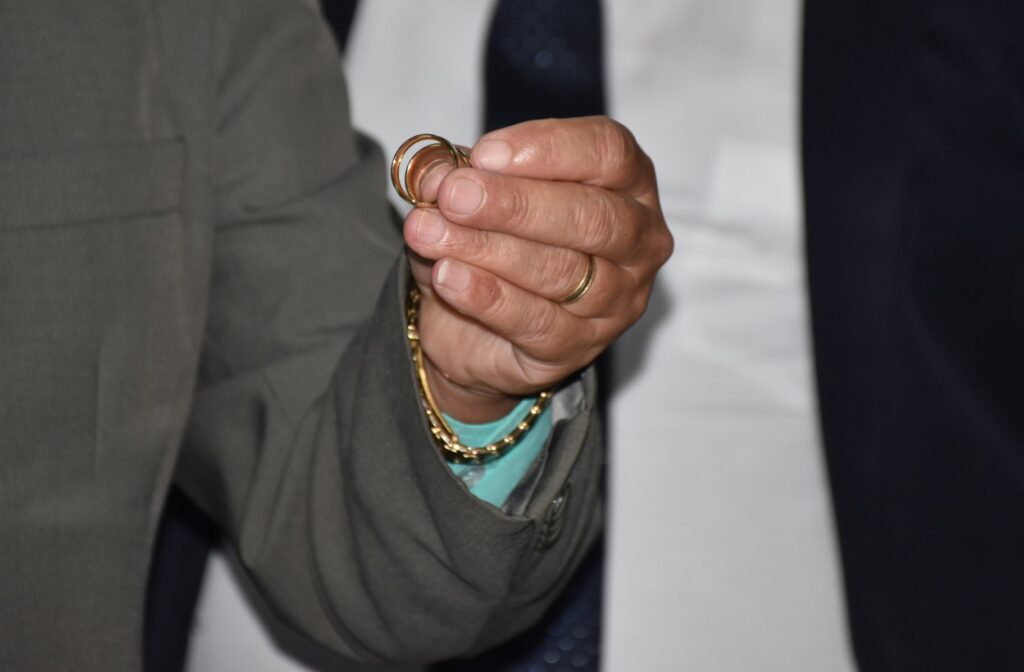 Em seguida, destacou a importância do símbolo maior daquele instante: “O que vocês têm nesta noite como prova visível e tangível desse amor eterno? As alianças.”