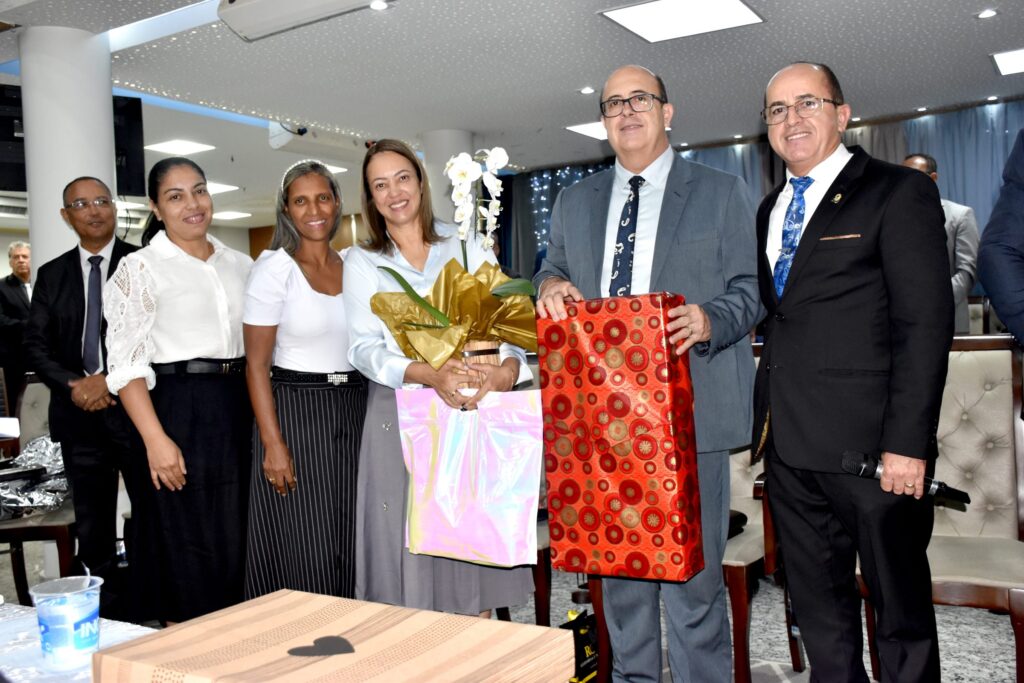 A homenagem foi realizada pelo pastor Sebastião Sampaio de Souza, que fez a entrega do presente em nome do ministério. O momento contou ainda com a participação das irmãs Janaína e Inês, que igualmente prestaram sua homenagem a irmã Vania, marcando a ocasião com gratidão e reconhecimento.