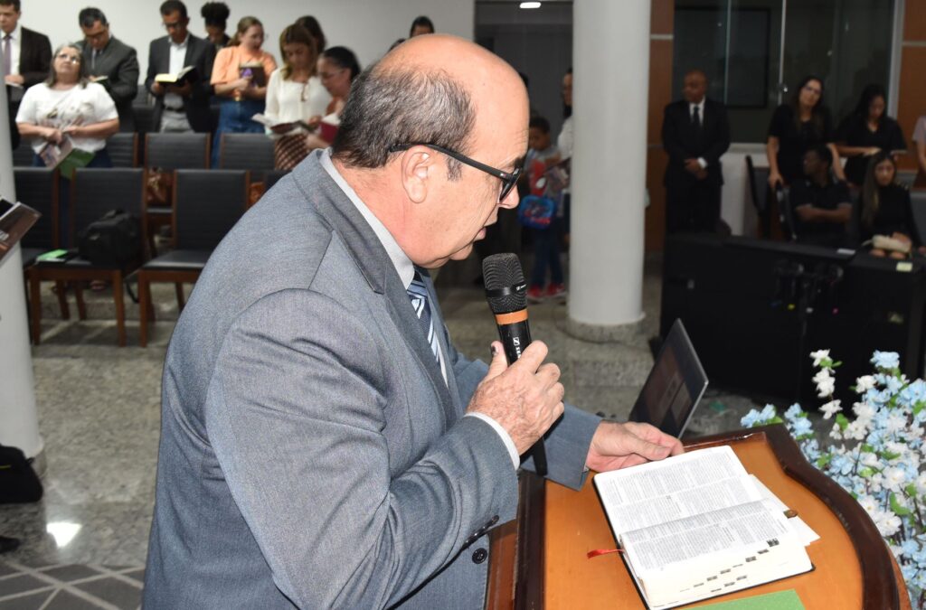 Após a mensagem inicial, o primeiro vice-presidente do ministério, Pr Raimundo Gilson da Silva, foi convidado para realizar a oração de abertura oficial da Escola Bíblica Anual.