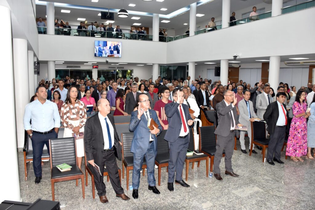 O presidente também leu textos bíblicos em Deuteronômio 19.14-15 e 2 Coríntios 13.1, ressaltando a fidelidade às Escrituras e o compromisso com a verdade bíblica.