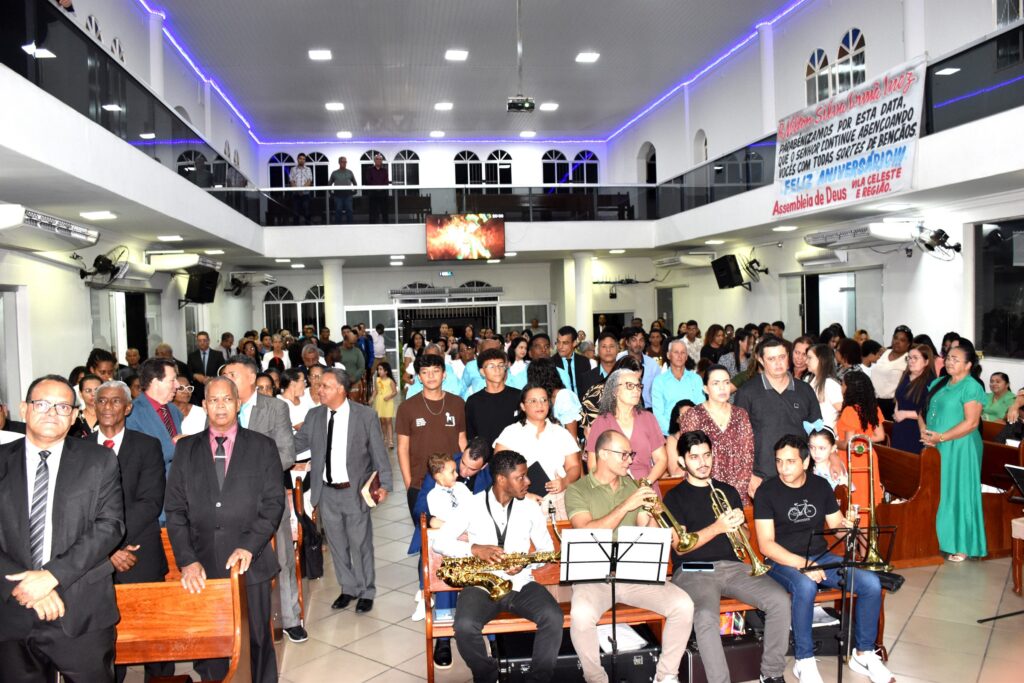 O templo ficou completamente lotado, refletindo a grande participação dos fiéis na comemoração de mais um ano de vida do pastor Nilton e de sua esposa, Idelfina Inês.