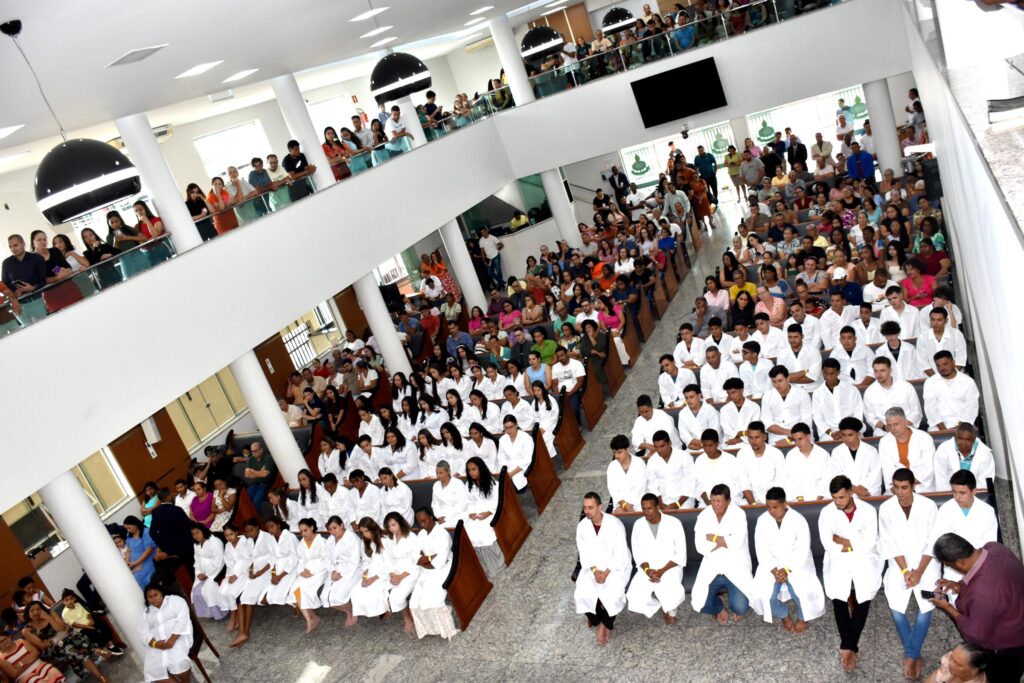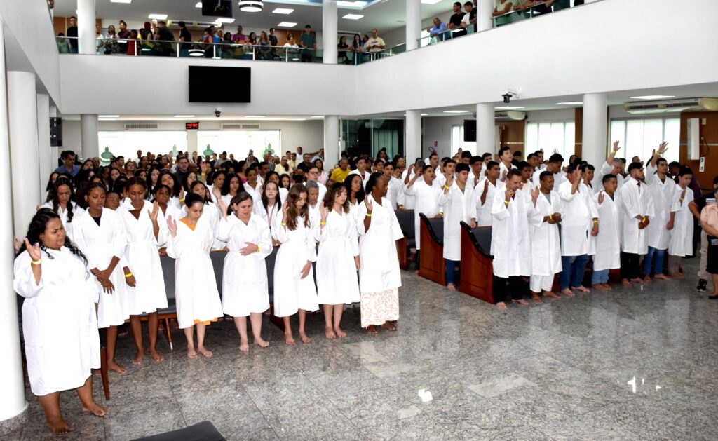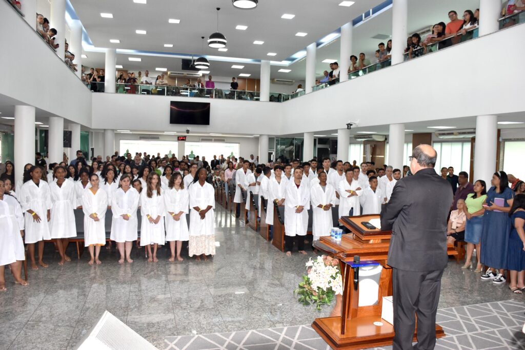 Em sua reflexão, o pastor enfatizou que o batismo nas águas representa uma confissão pública de fé e simboliza a morte para a vida passada e o início de uma nova caminhada com Deus. “Quando vocês são mergulhados nas águas, é como um sepultamento simbólico, marcando uma transformação espiritual e o compromisso com uma nova vida”, destacou.