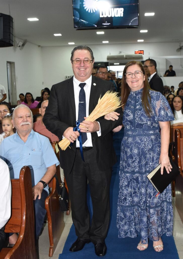 Outro momento de grande emoção foi a homenagem à irmã Vera, esposa do pastor Júlio, que recebeu uma canção especial composta e interpretada pelo próprio aniversariante, expressando gratidão e reconhecimento por sua parceria no ministério.