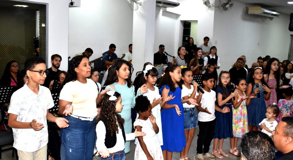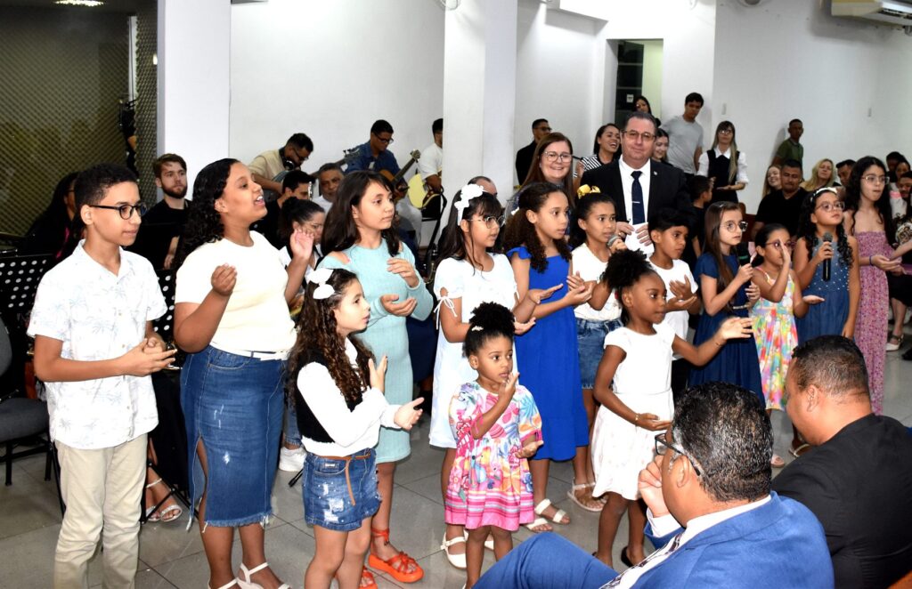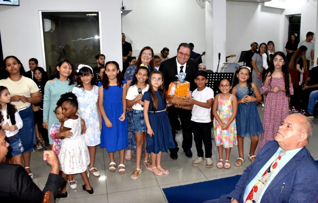 O departamento infantil, que apresentou uma emocionante homenagem ao pastor regional.
