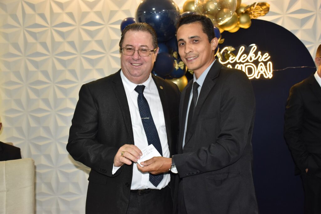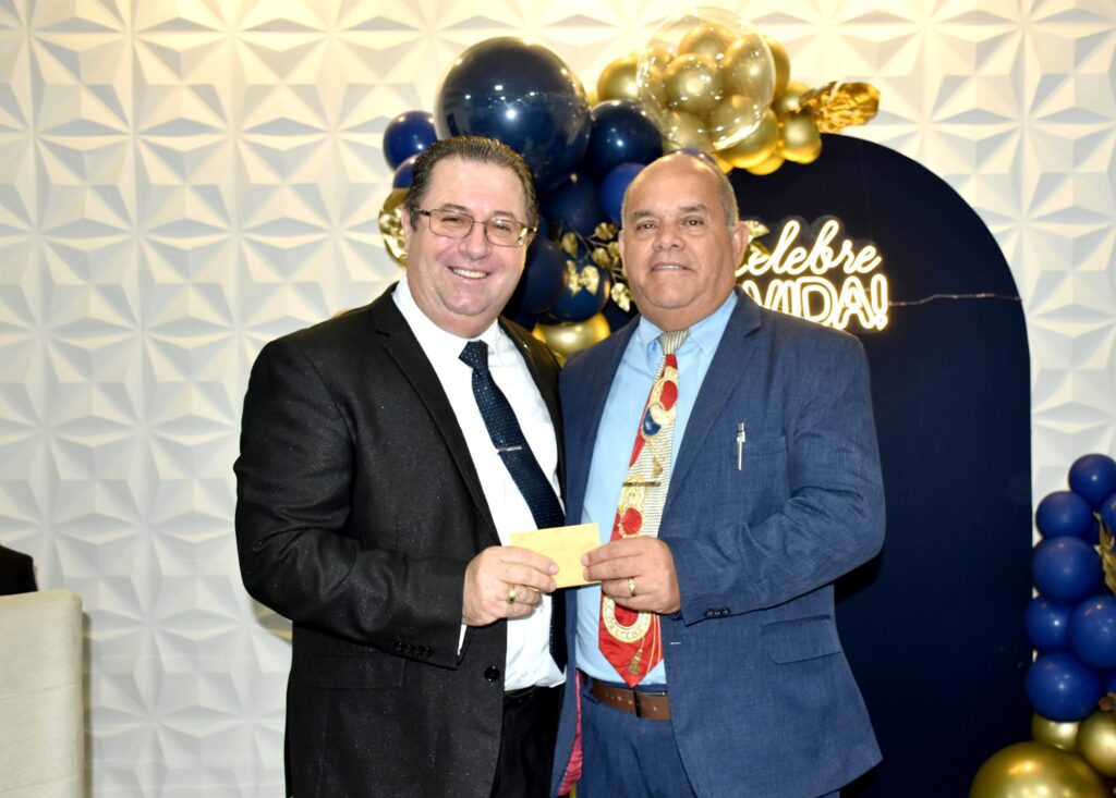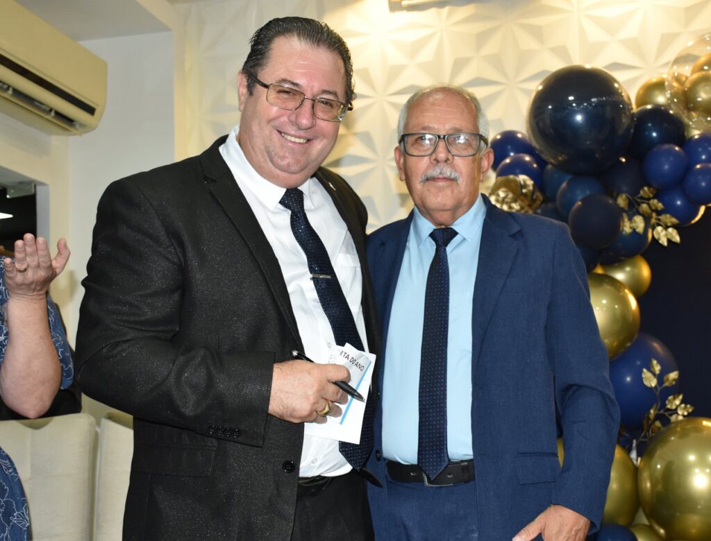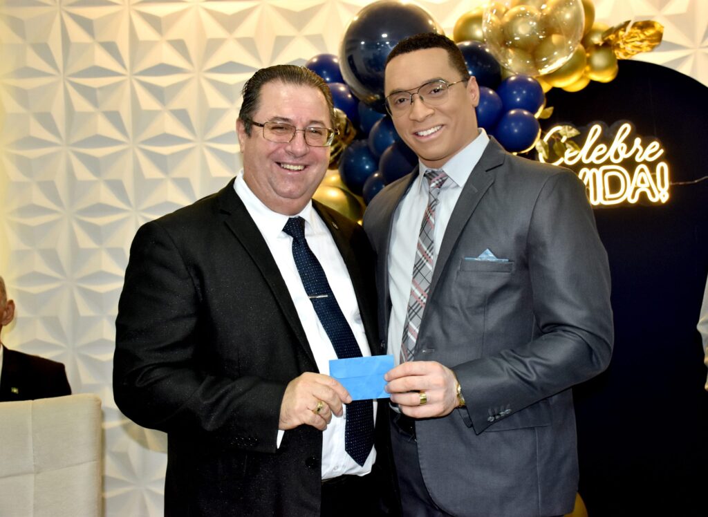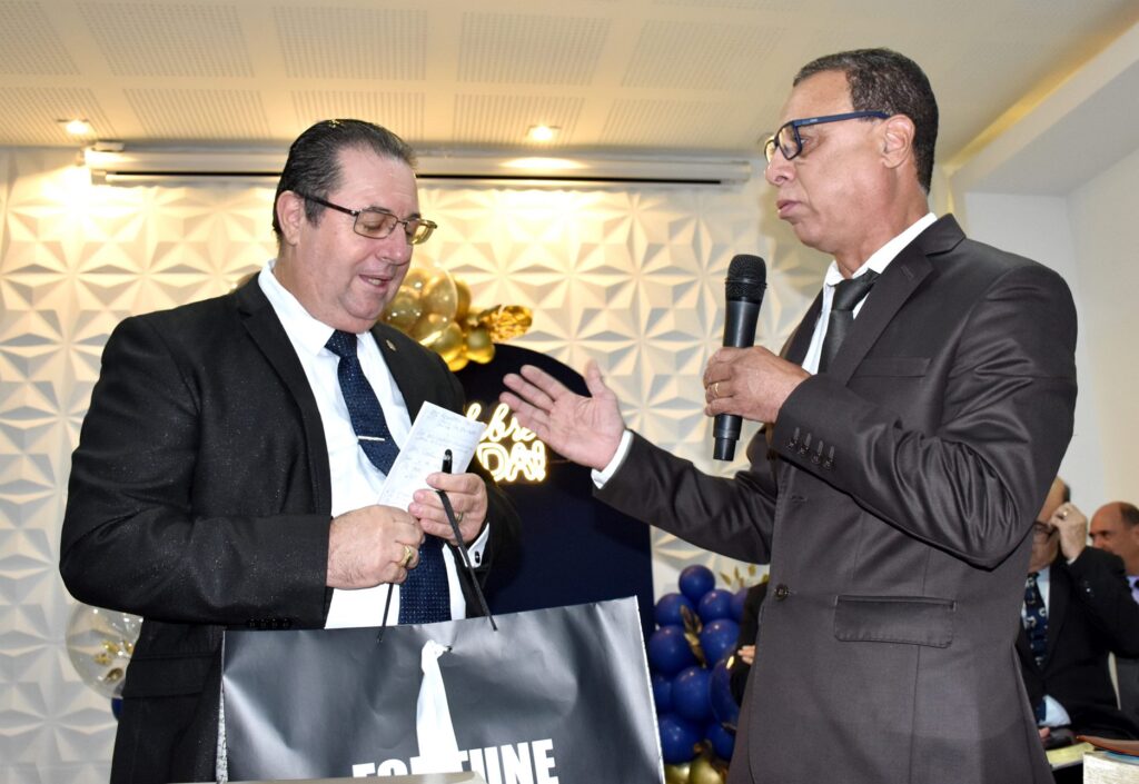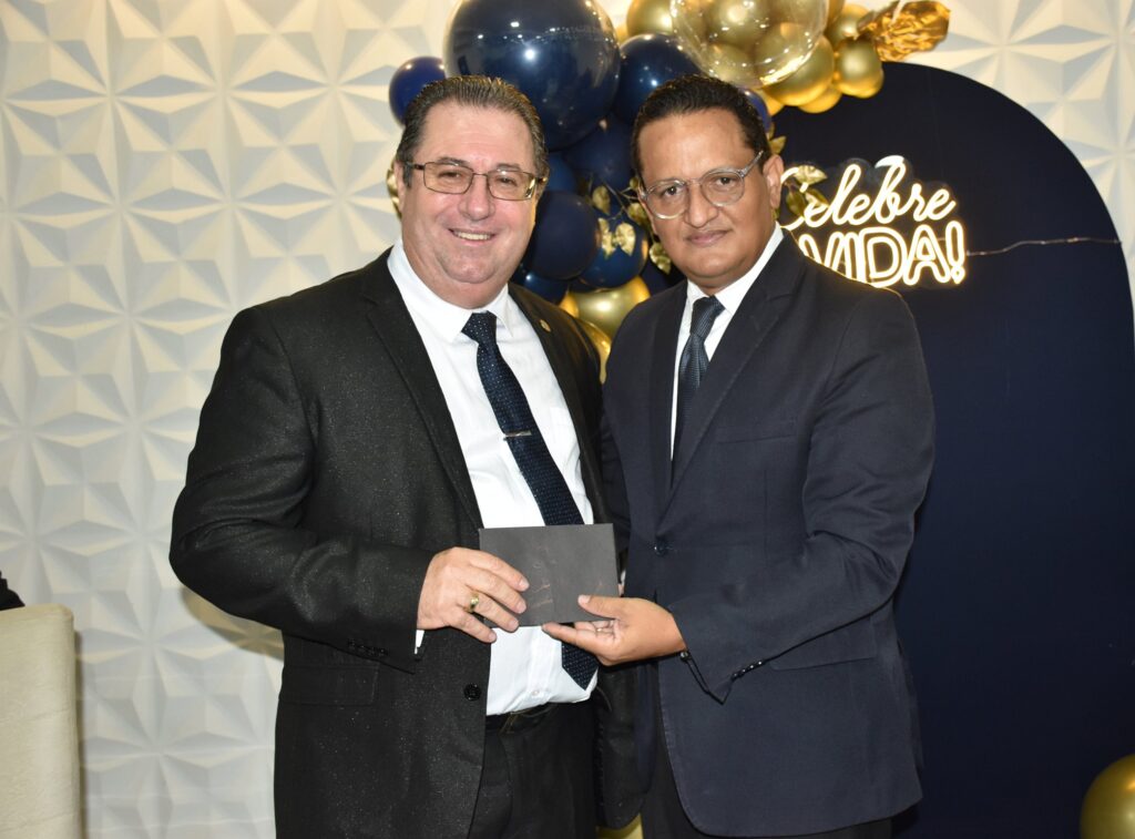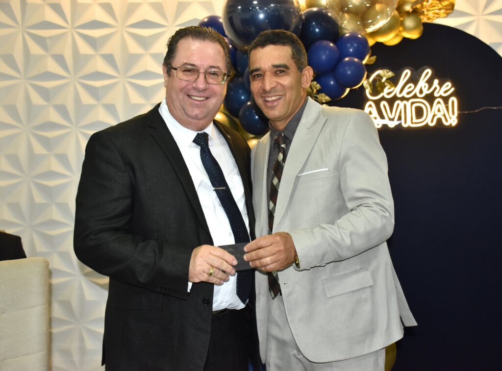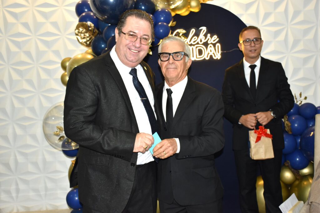 O pastor Joel Francisco, representante do deputado federal Lincoln Portela e da deputada Alê Portela, esteve presente na celebração e, na ocasião, presenteou o aniversariante em nome dos políticos.
